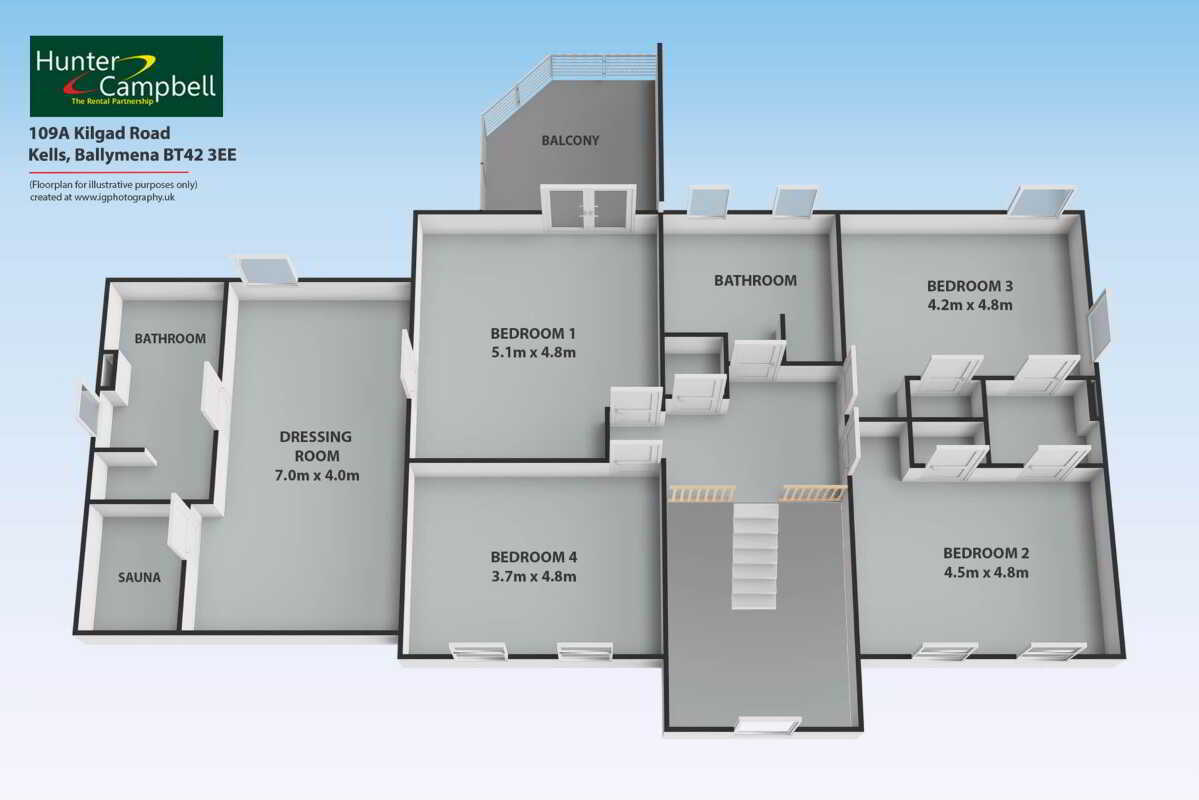 - Master Bedroom with Dressing Room and Sauna and Balcony Affording Countryside Views