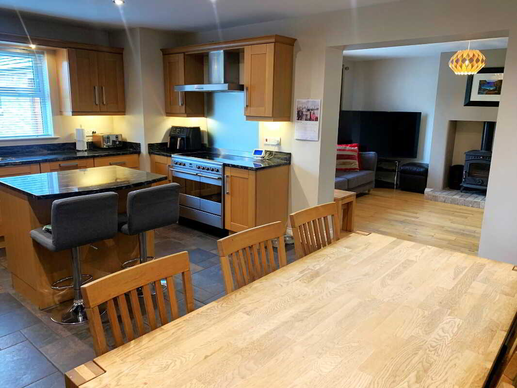 - The same open plan to the family / dining room.