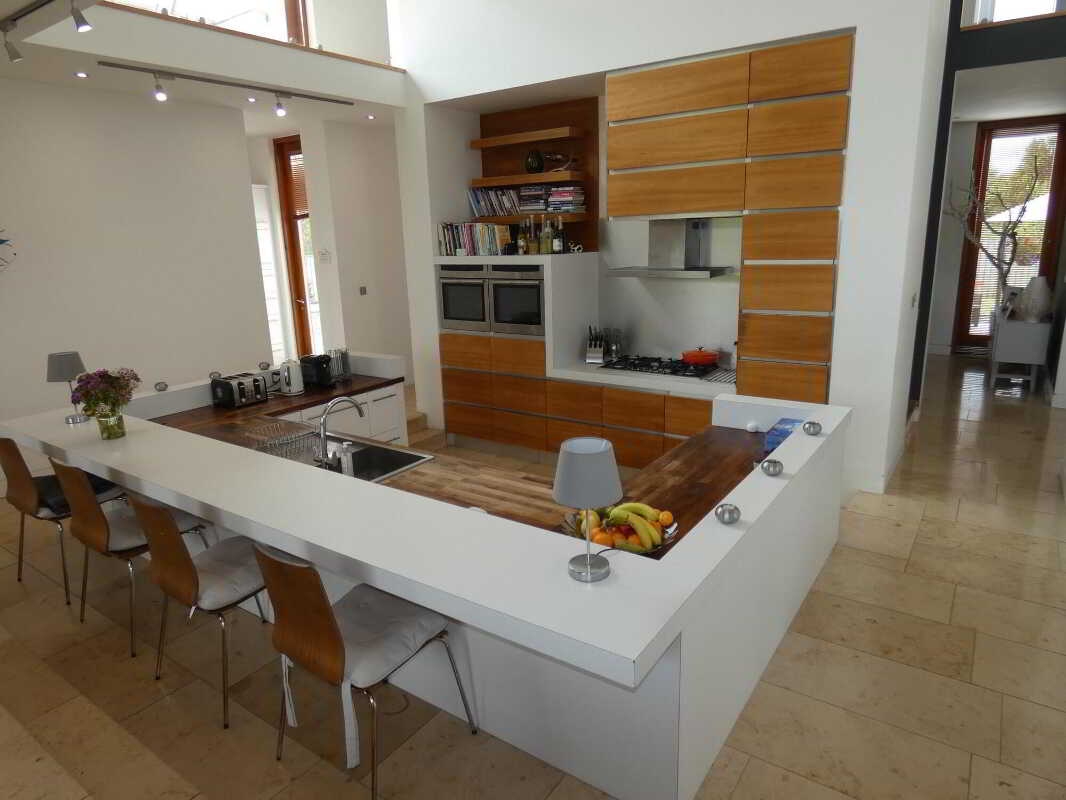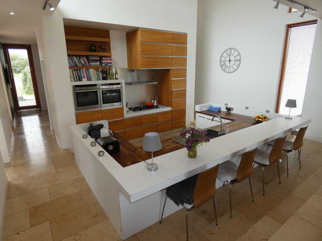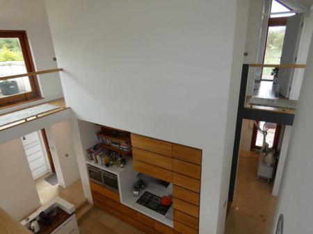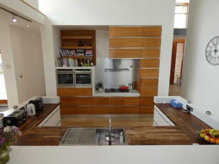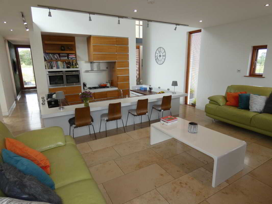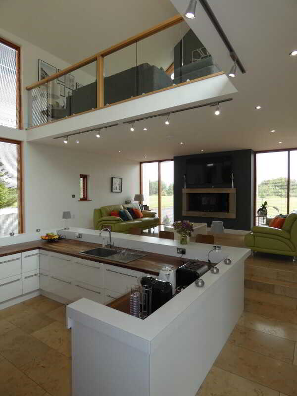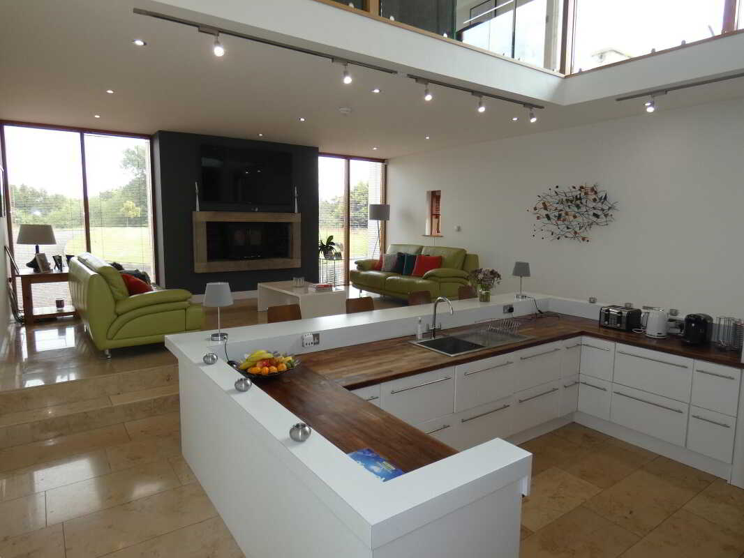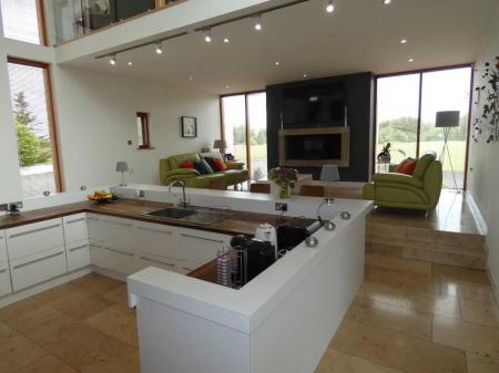 - The same with an impressive range of fitted units and open plan to a living room with a feature central fireplace.