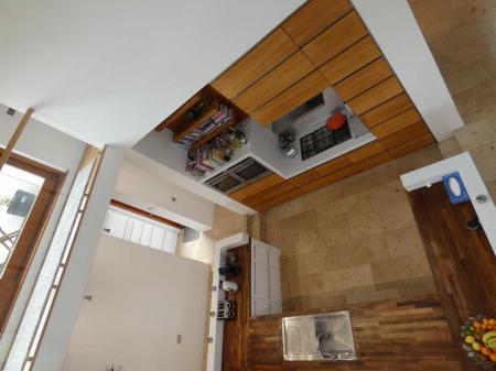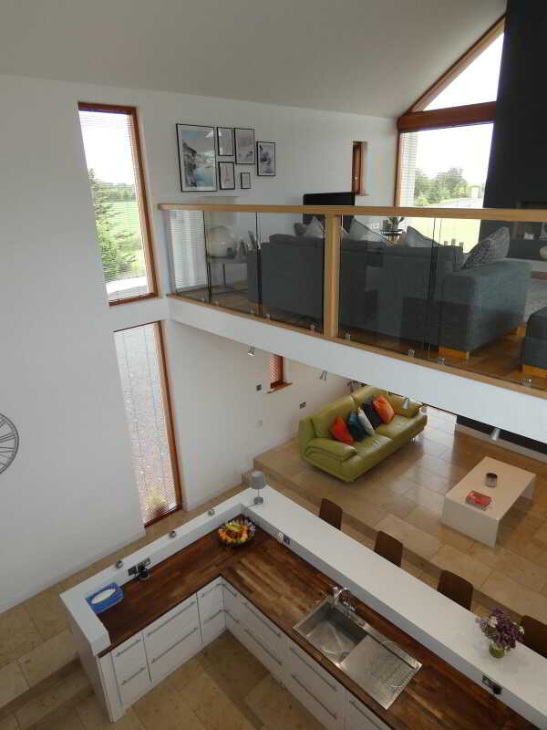 - Including the feature kitchen/dinette/living room with a vaulted ceiling (almost 26 ft.) to the upper floor ceiling.