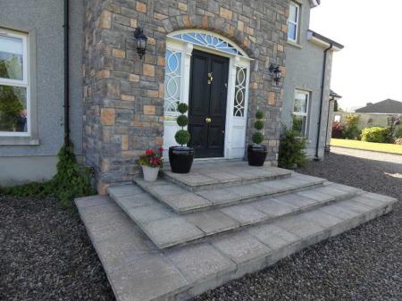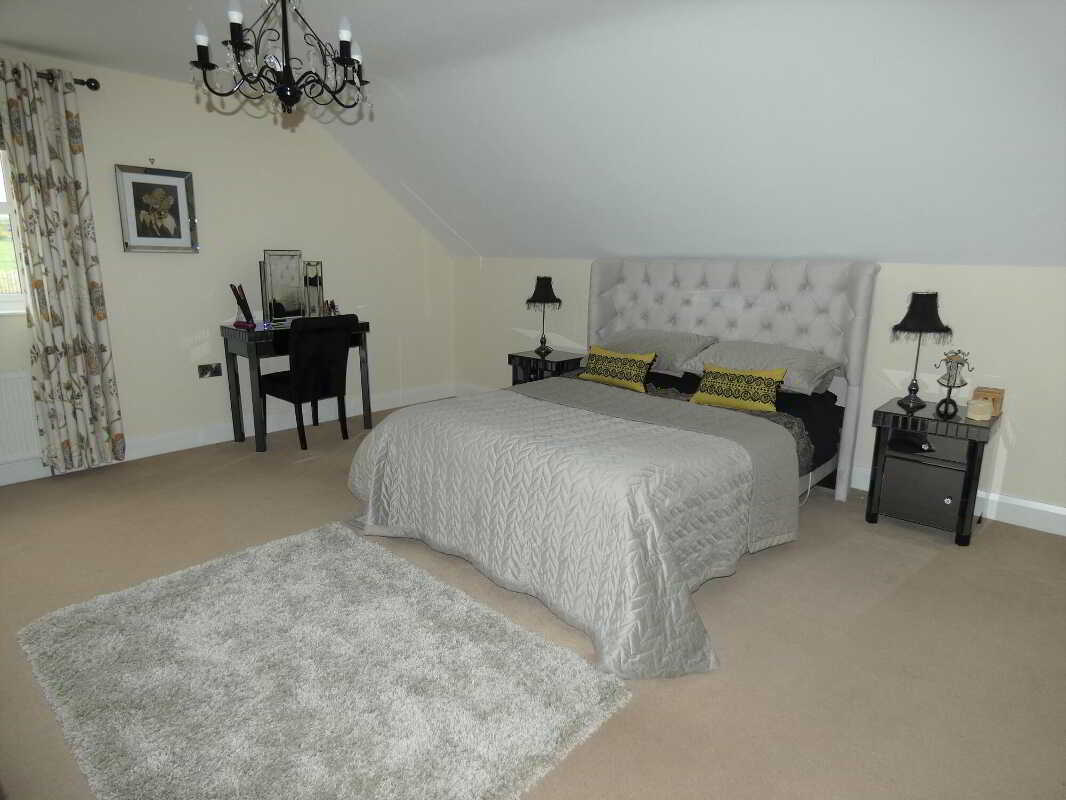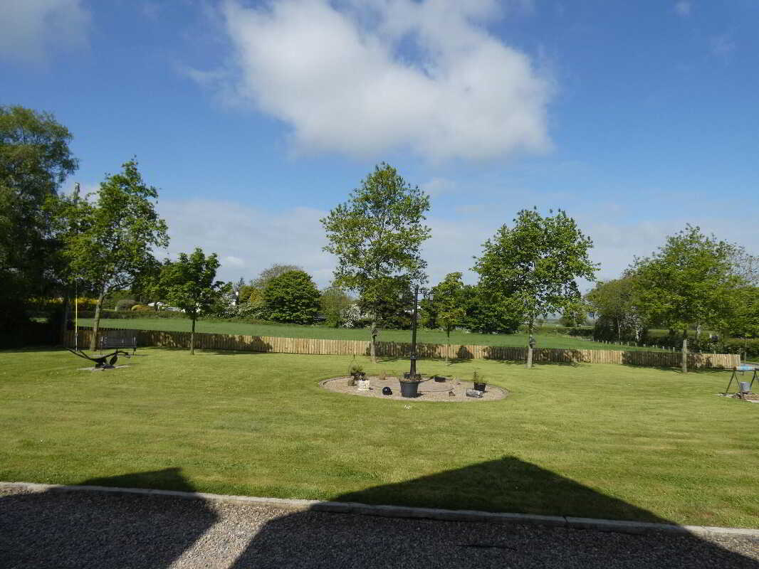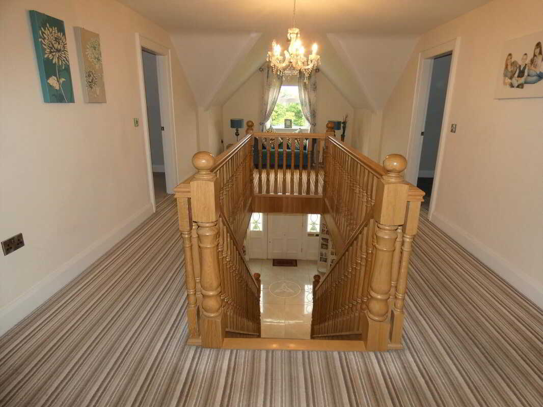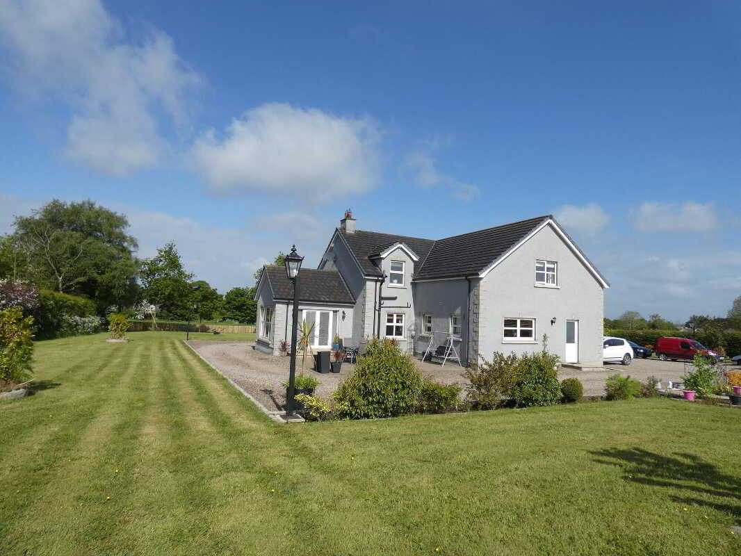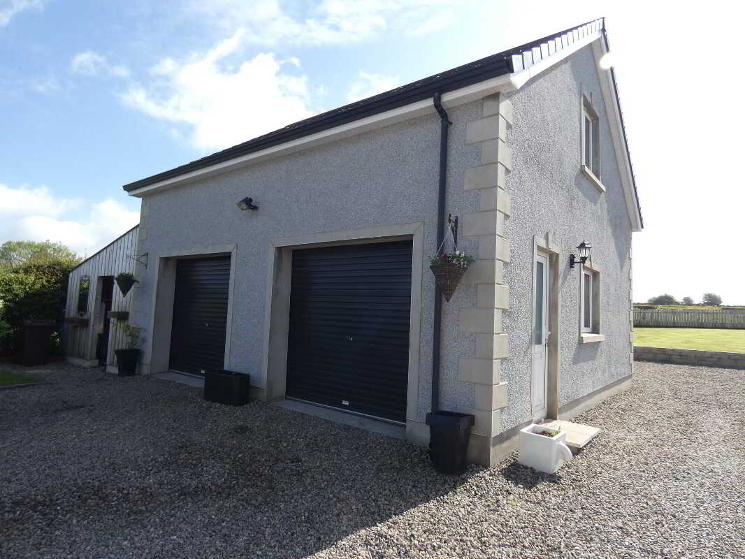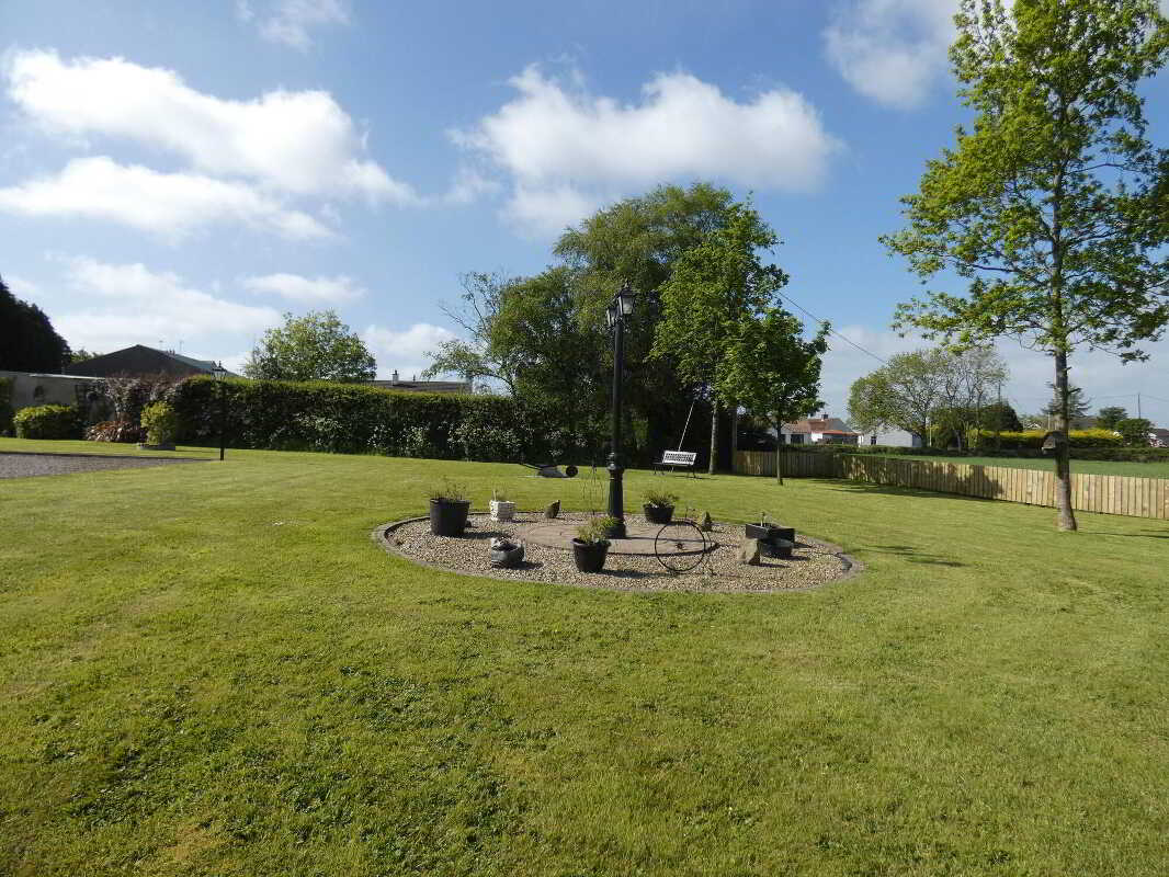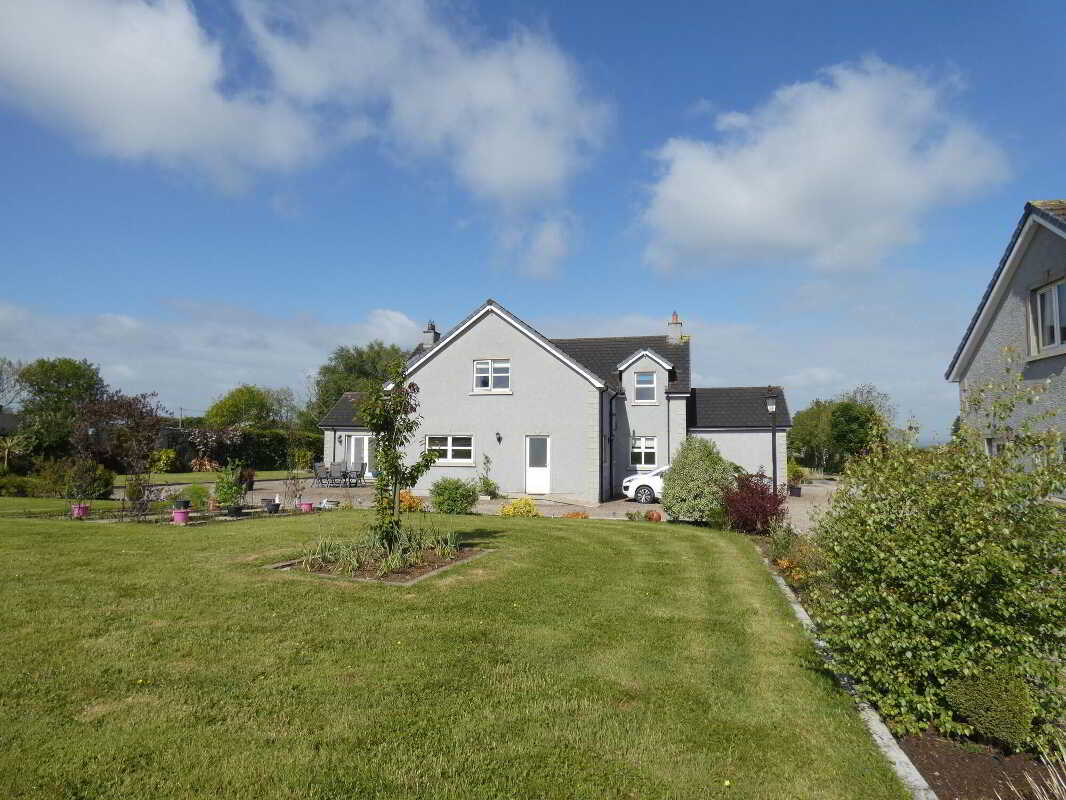 uPVC fascia and soffits with soffit downlights to front on the property.Set on grounds in excess of 1 acre.Stoned driveway with entrance pillars.Extensive stoned parking areas to front, side and rear of the property.Spacious patio area to side/rear of property.Landscaped garden areas to front, side and rear of the property.Outside tap to rear of the property.Outside lights to front, side and rear of the property.