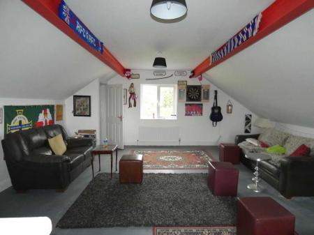 With 2 x roller doors, pedestrian door, windows, light and power points.Separate w.cWith w.c, wash hand basin.Stairs to:Office/Games Room6.96m x 6.93m (22' 10" x 22' 9")