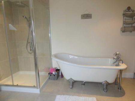 Fitted suite including roll top bath with claw feet and telephone hand shower, thermostatic shower, tiled cubicle, w.c, wash hand basin with tiled splashback, tiled floor, ceiling downlights, extractor fan, shelved hotpress with tiled floor and light.Exterior FeaturesDetached Double Garage6.96m x 6.91m (22' 10" x 22' 8")