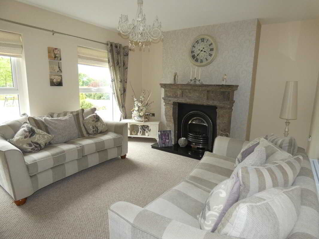 We as selling agents recommend an early inspection to fully appreciate the quality, location and accommodation of this substantial rural family home in its delightful setting.Spacious Reception HallTiled floor with celtic feature, ceiling downlights, open tread staircase to first floor.CloakroomWith tiled floor and light.Lounge4.83m x 4.75m (15' 10" x 15' 7")