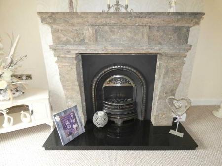 Feature stone fireplace with cast iron inset, marble/granite hearth, electric fire, T.V. point and telephone point.