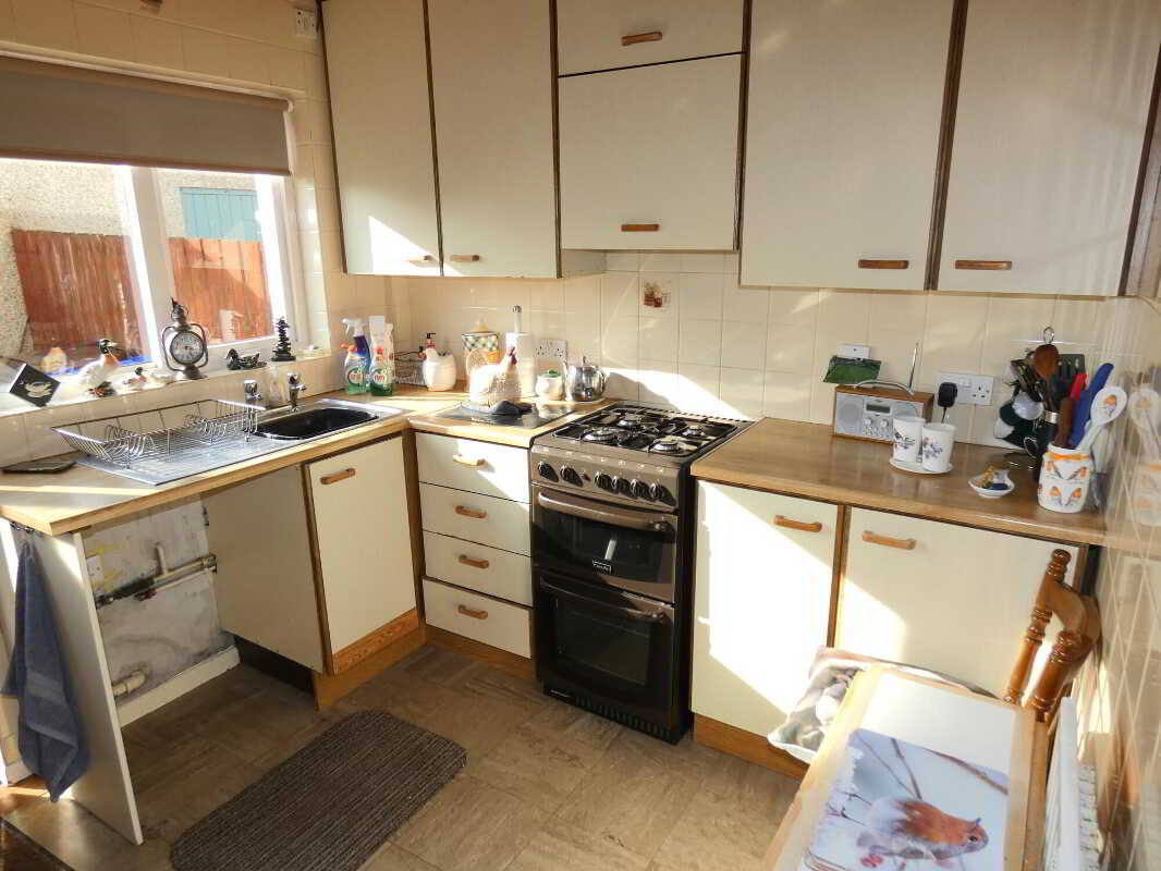 A spacious double aspect living room with a tiled fireplace and hearth – including a back boiler – linked to the heating system.Kitchen3.18m x 2.54m (10'5 x 8'4)
