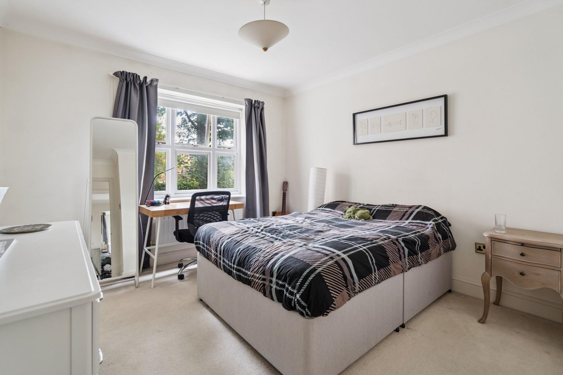 Outside, the property boasts a beautifully landscaped communal garden with mature trees, lush greenery, and a well-maintained lawn.