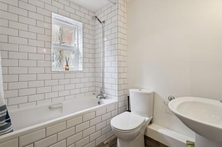 The bathroom comprises a suite with panelled bath with overhead shower, WC and wash hand basin.
