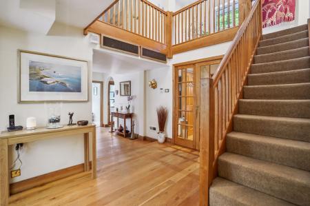 Stepping through the wooden front door, you are greeted by an inviting entrance lobby with rich wood flooring, cloakroom and coats cupboard.