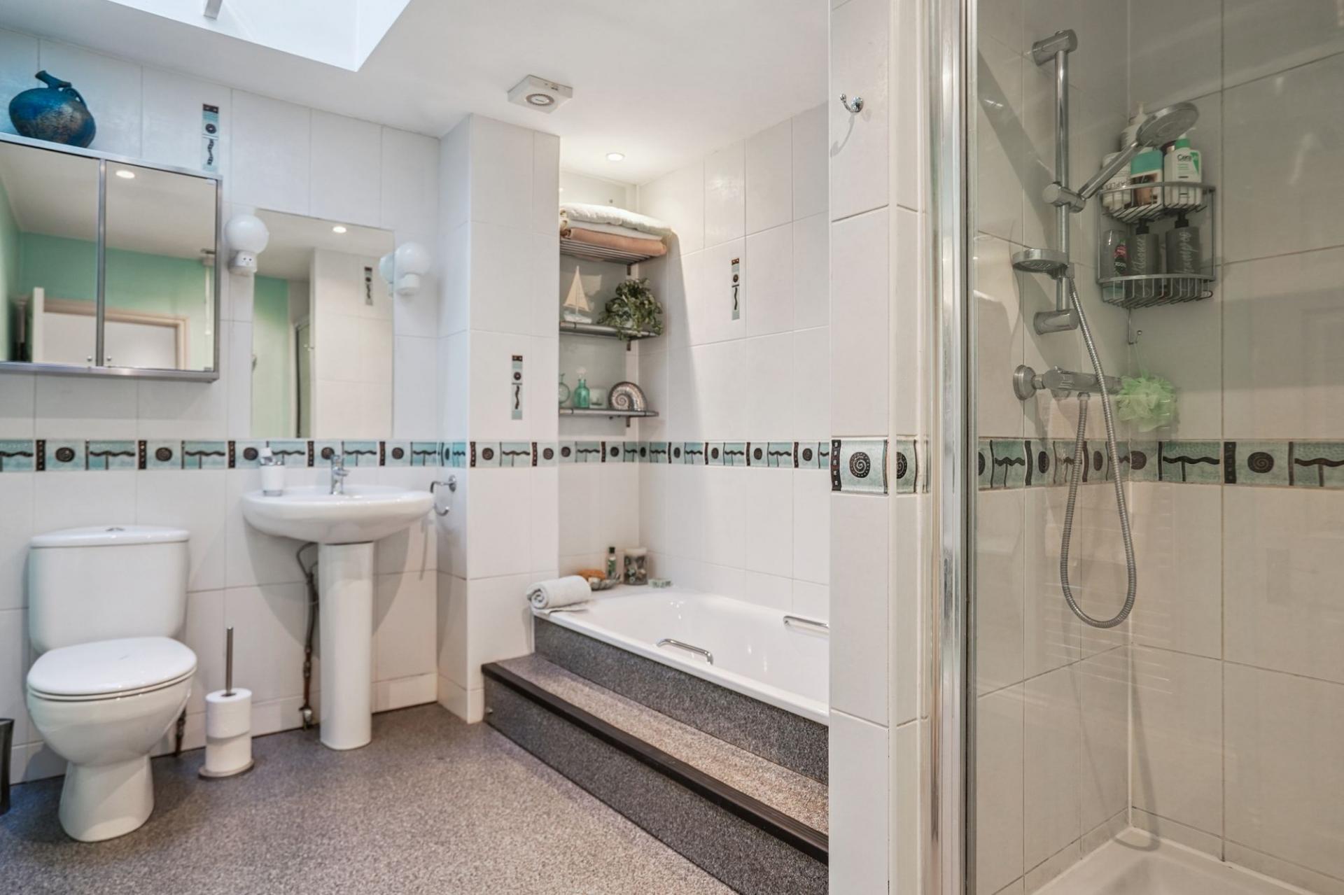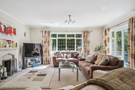 The double-aspect sitting room is a true highlight – a refined yet comfortable space with a feature working stone fireplace and French doors opening directly onto the garden.