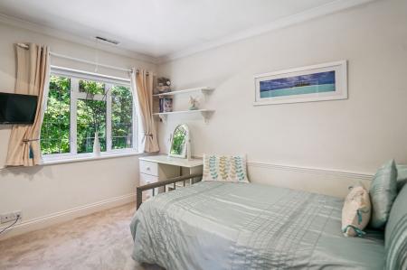The principle suite is an elegant sanctuary, with bespoke built in wardrobes, a luxurious en suite shower room, and French doors opening to a private balcony – the perfect spot for morning coffee or evening drinks while enjoying views over the gardens.