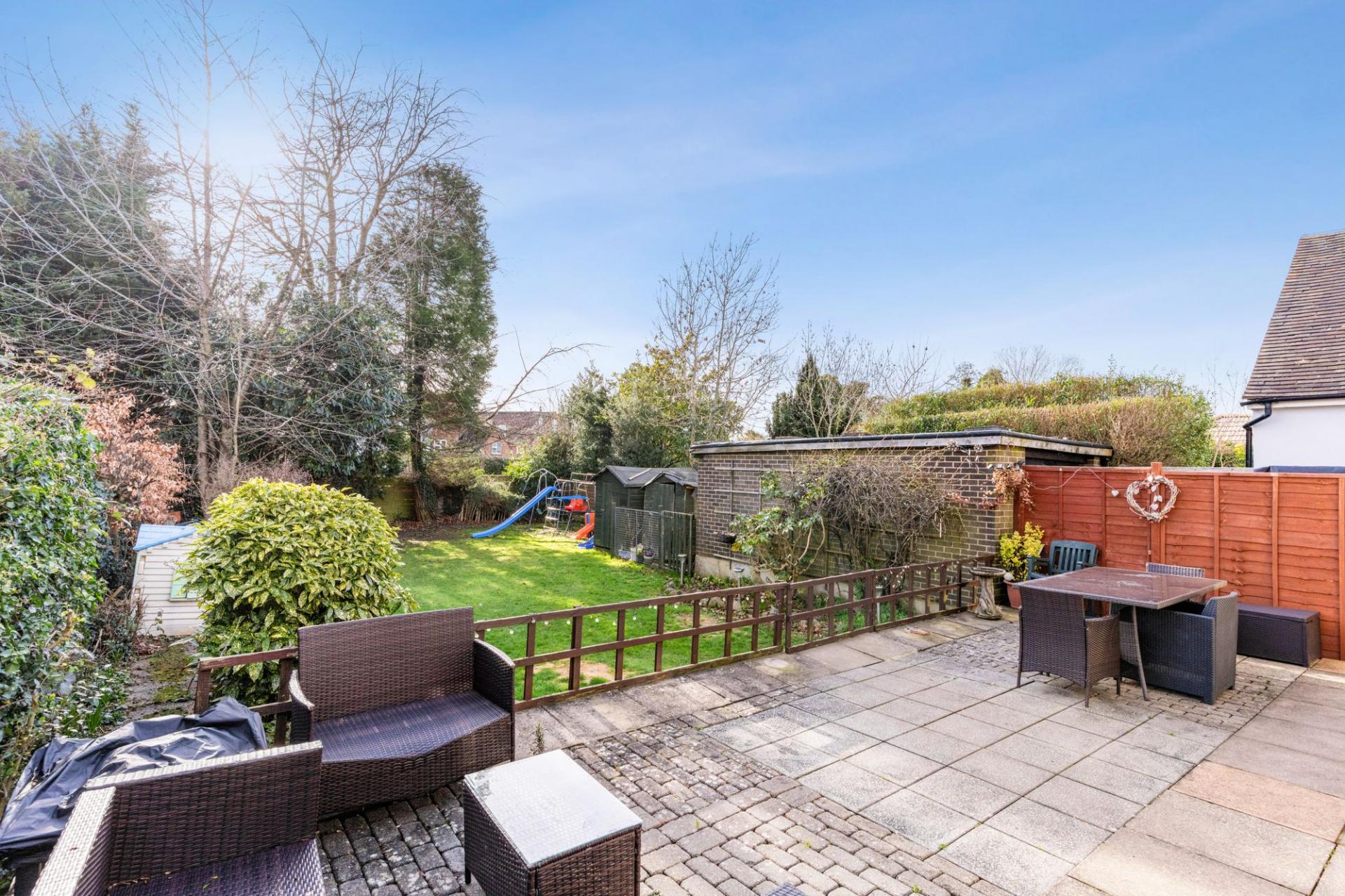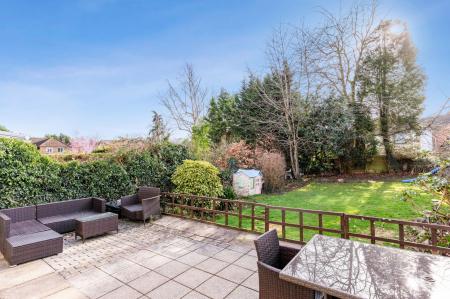 The 75' south facing rear garden has a wonderful patio area, perfect for outdoor entertaining and al fresco dining and leads to the spacious lawned area.
