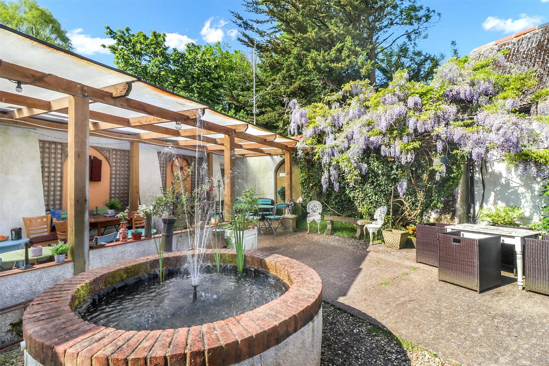 Fronting the road and with pedestrian access from the farmhouse garden, is a triple garage (one with water) that is connected to the reverse of the cob barn.