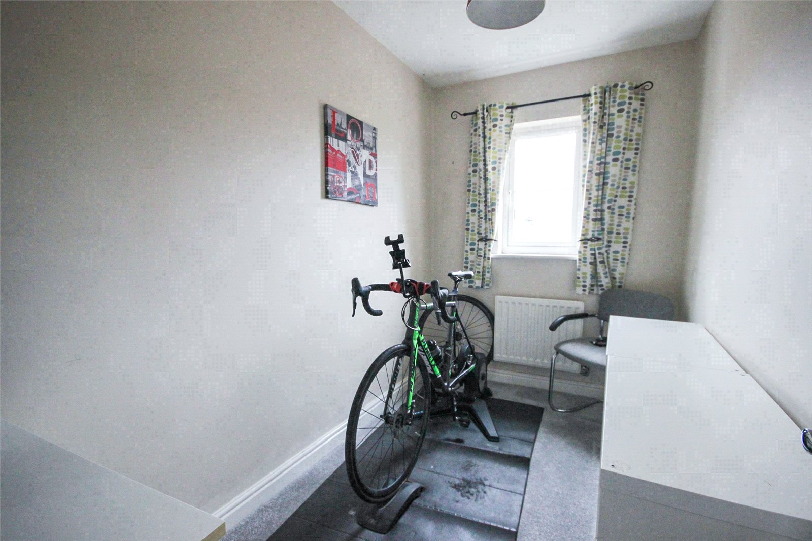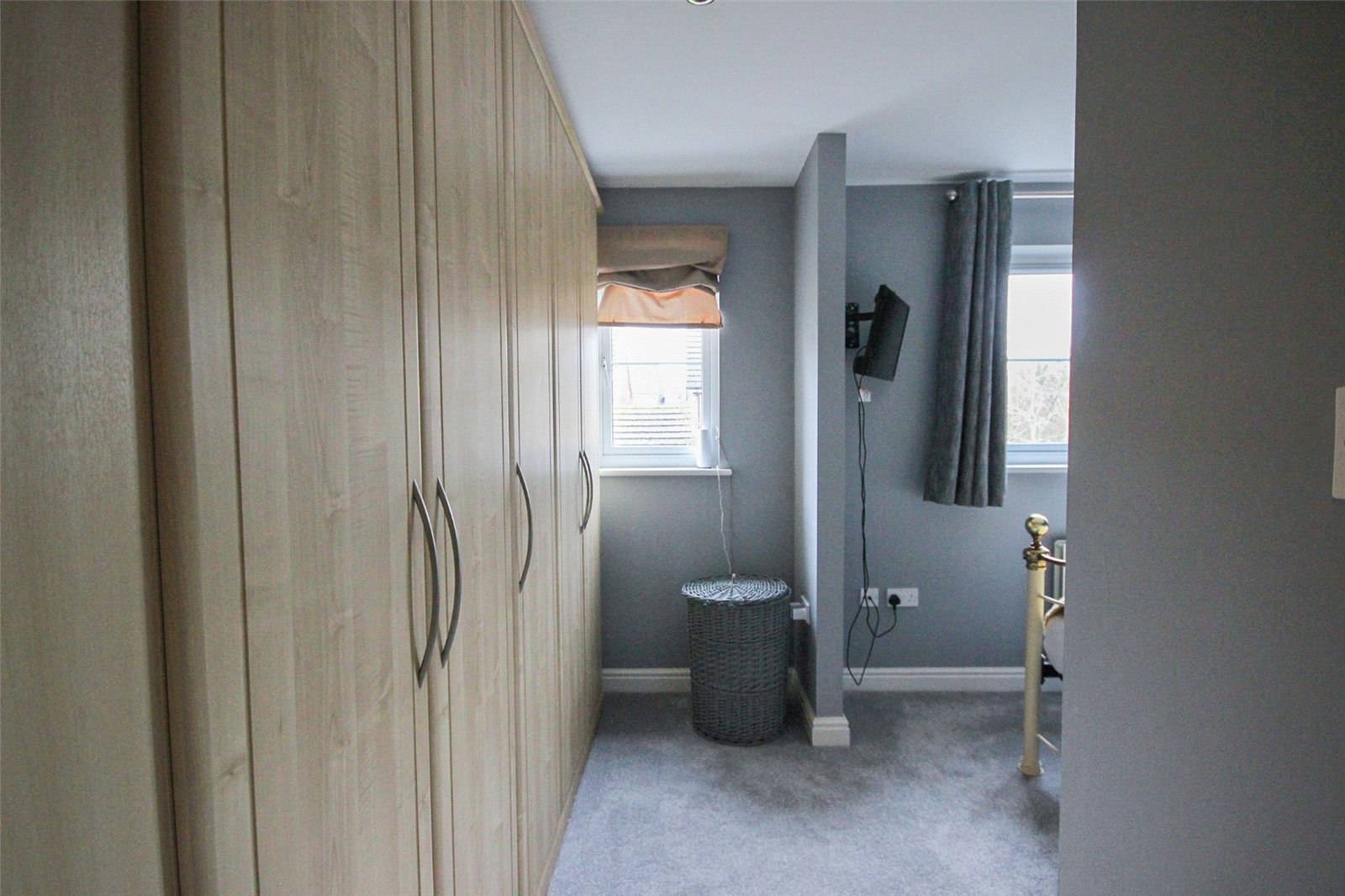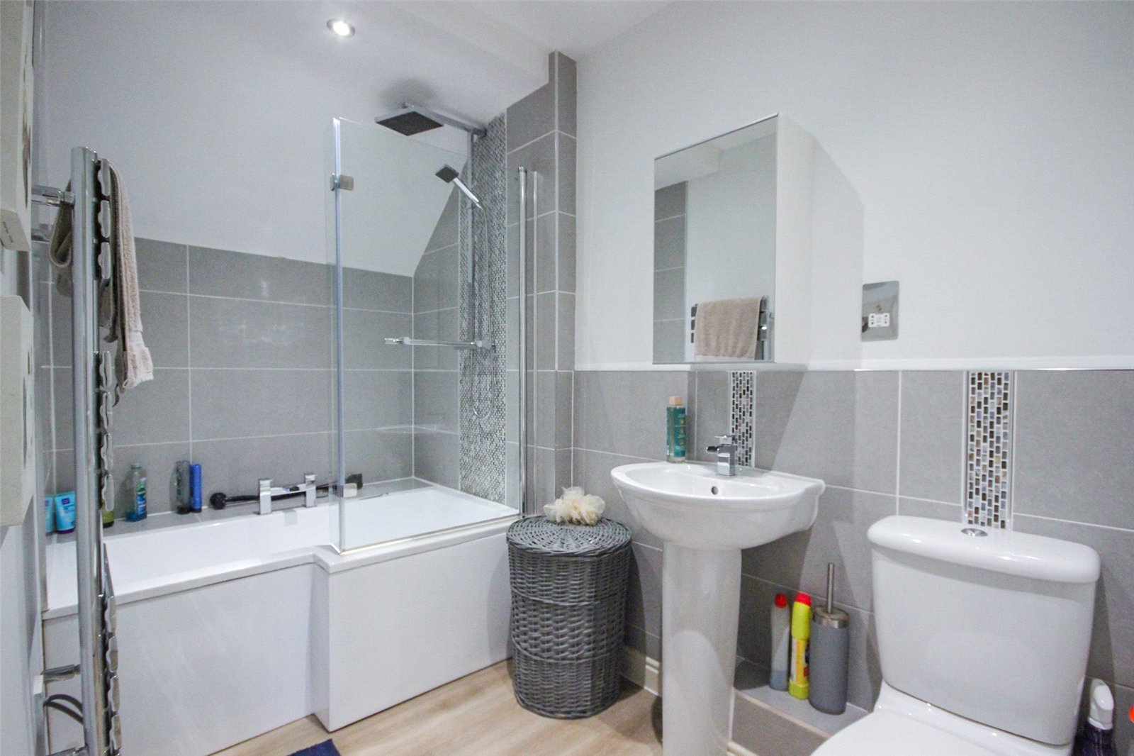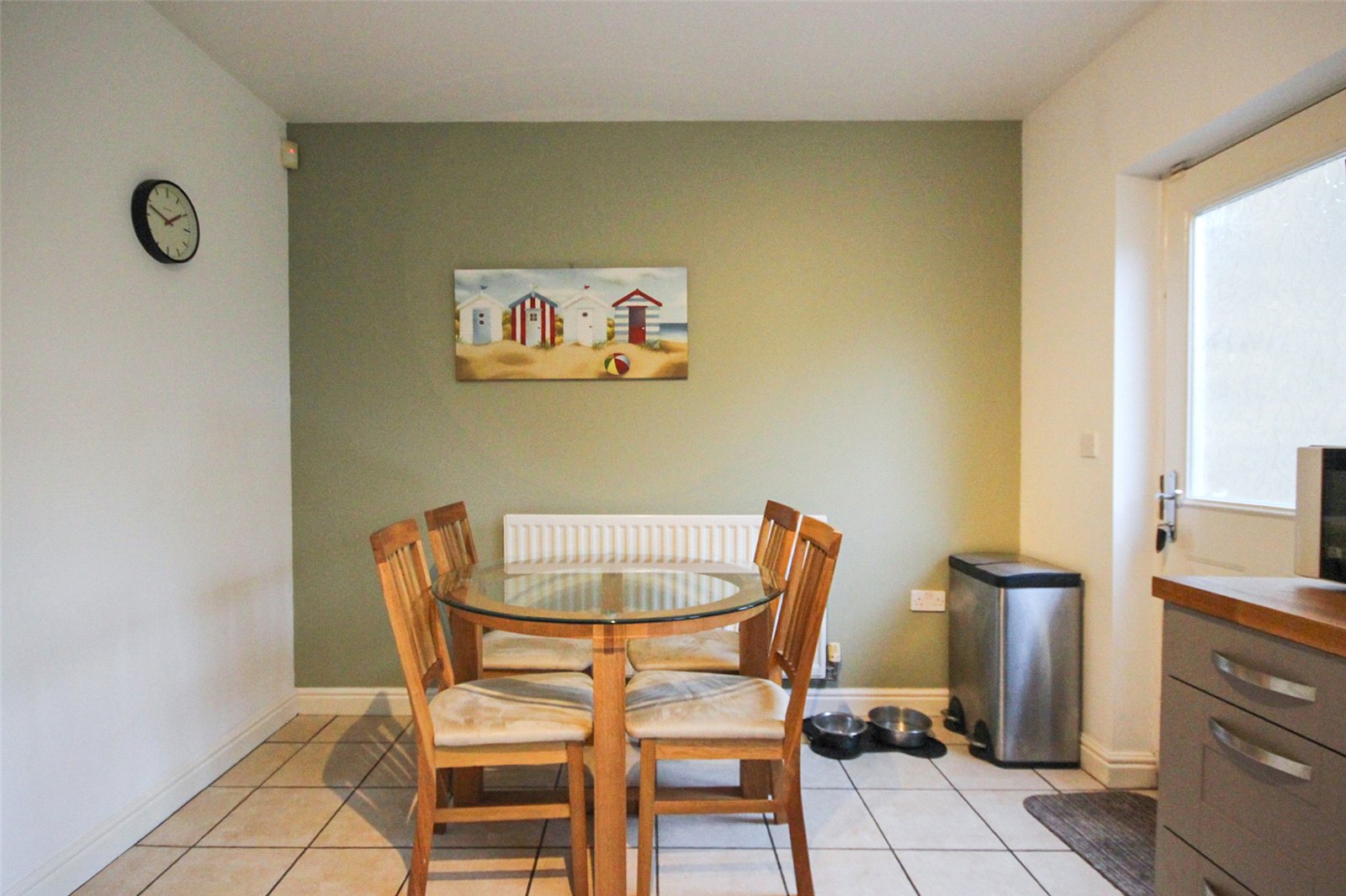 Entrance into a wide hallway, with stairs to the first floor and a storage cupboard underneath. There is a versatile room to the front of the property which could be used as a home office or formal dining room, and a convenient ground floor WC. The kitchen/dining room spans the width of the property, and enjoys views over the rear garden. The kitchen is fitted with a modern range of wall and base level units and has ample space for family dining. On the first floor sits a generous lounge, with a cosy feature fireplace. The master bedroom is also situated on the first floor, a stylish space with semi-open plan layout to the dressing area, which features full length wardrobes. There is also a contemporary en-suite shower room, fitted with a white suite. On the top floor are three additional bedrooms, and a spacious family bathroom. Outside there is a neat pathway leading to the front door, and a well maintained rear garden which is mainly laid to lawn. The property also boasts a single garage in a block.