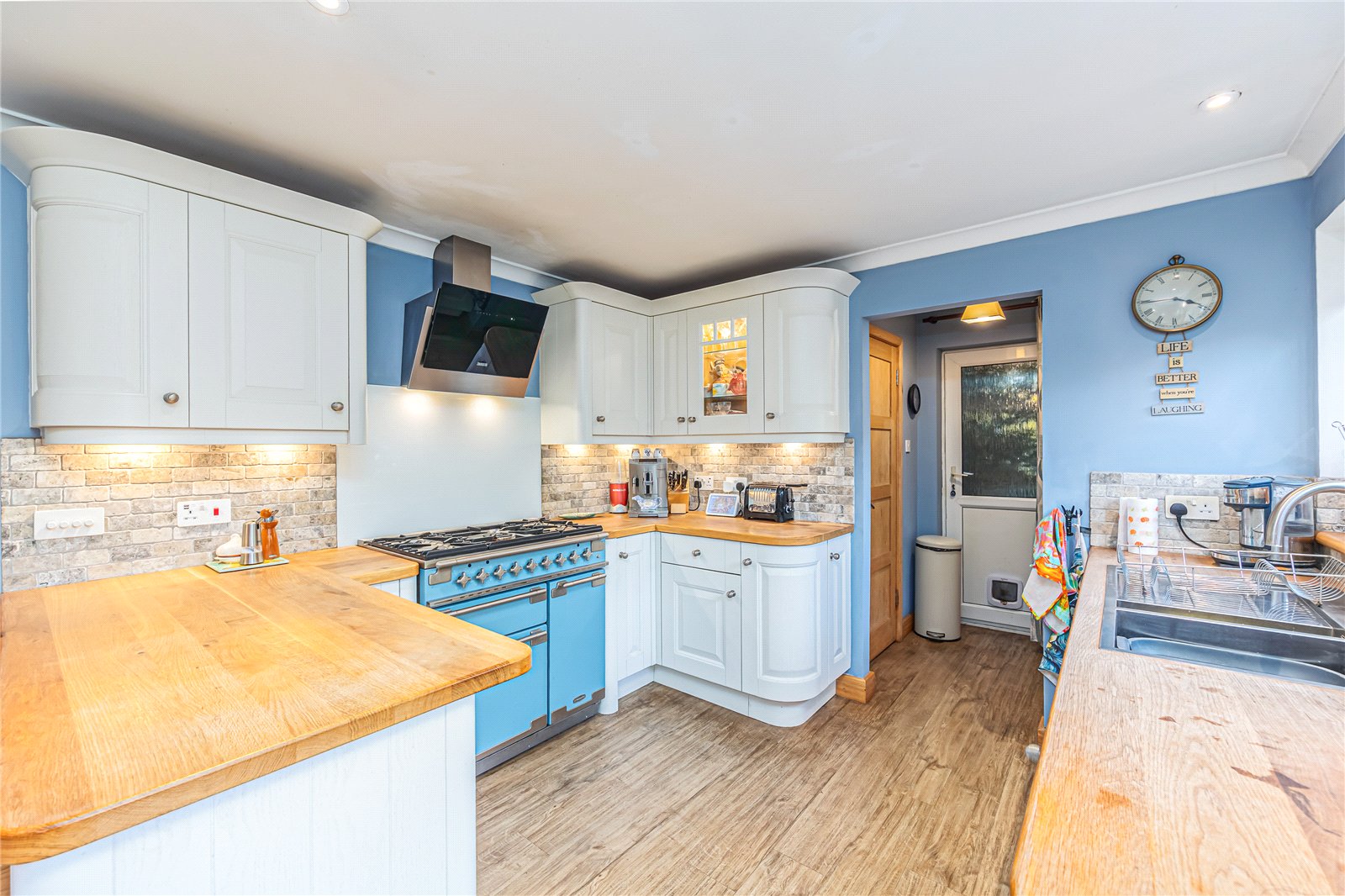 - 18'1ft by 13'1ft contemporary kitchen/diner with separate utility room