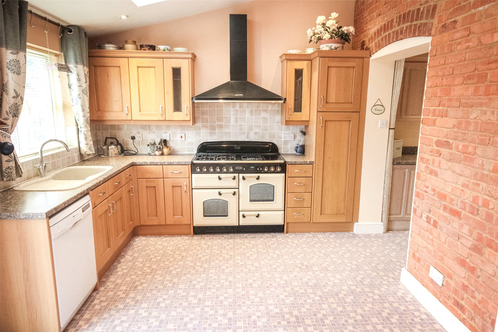 - Stunning kitchen with sloped ceiling incorporating Velux windows