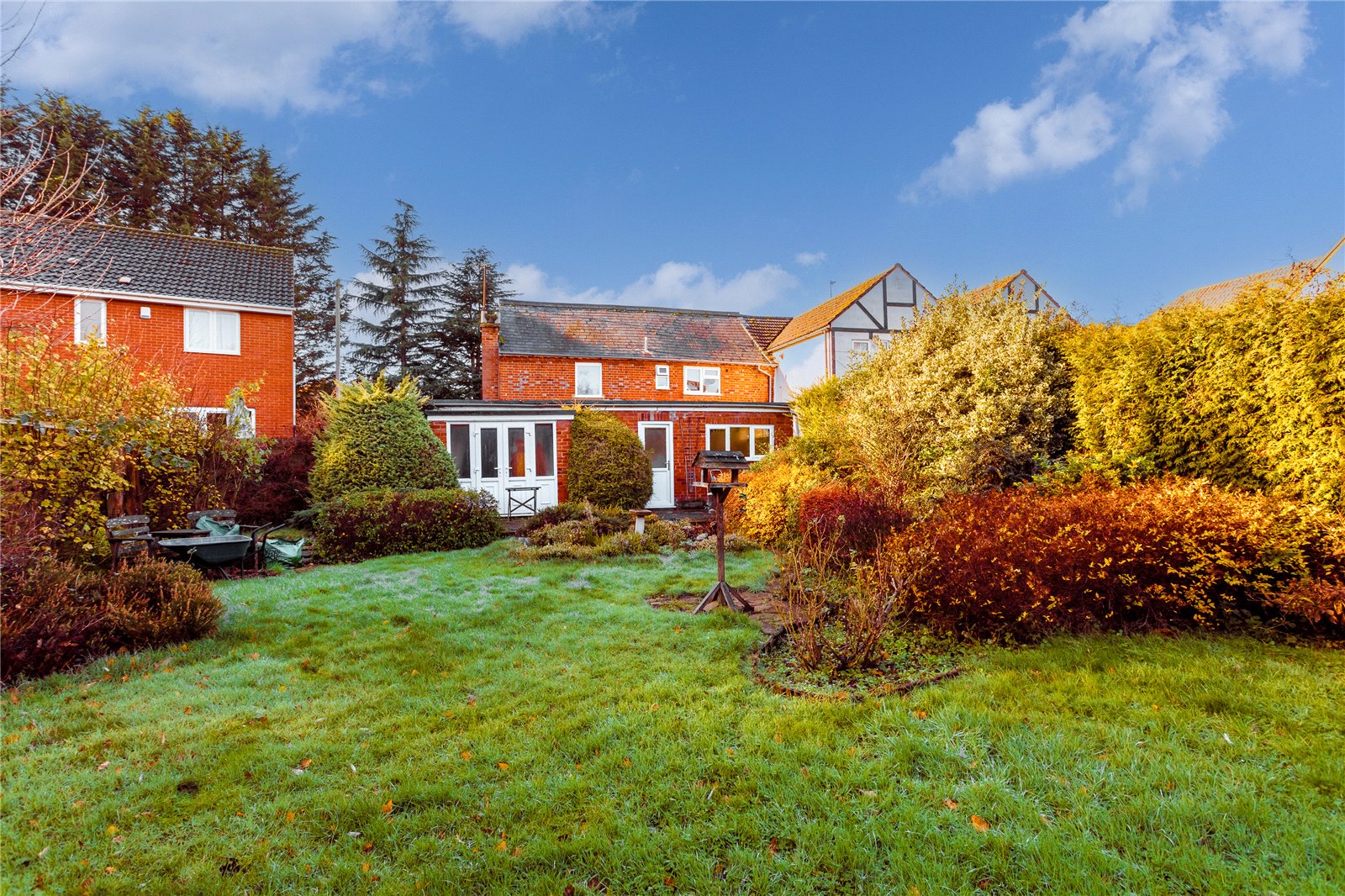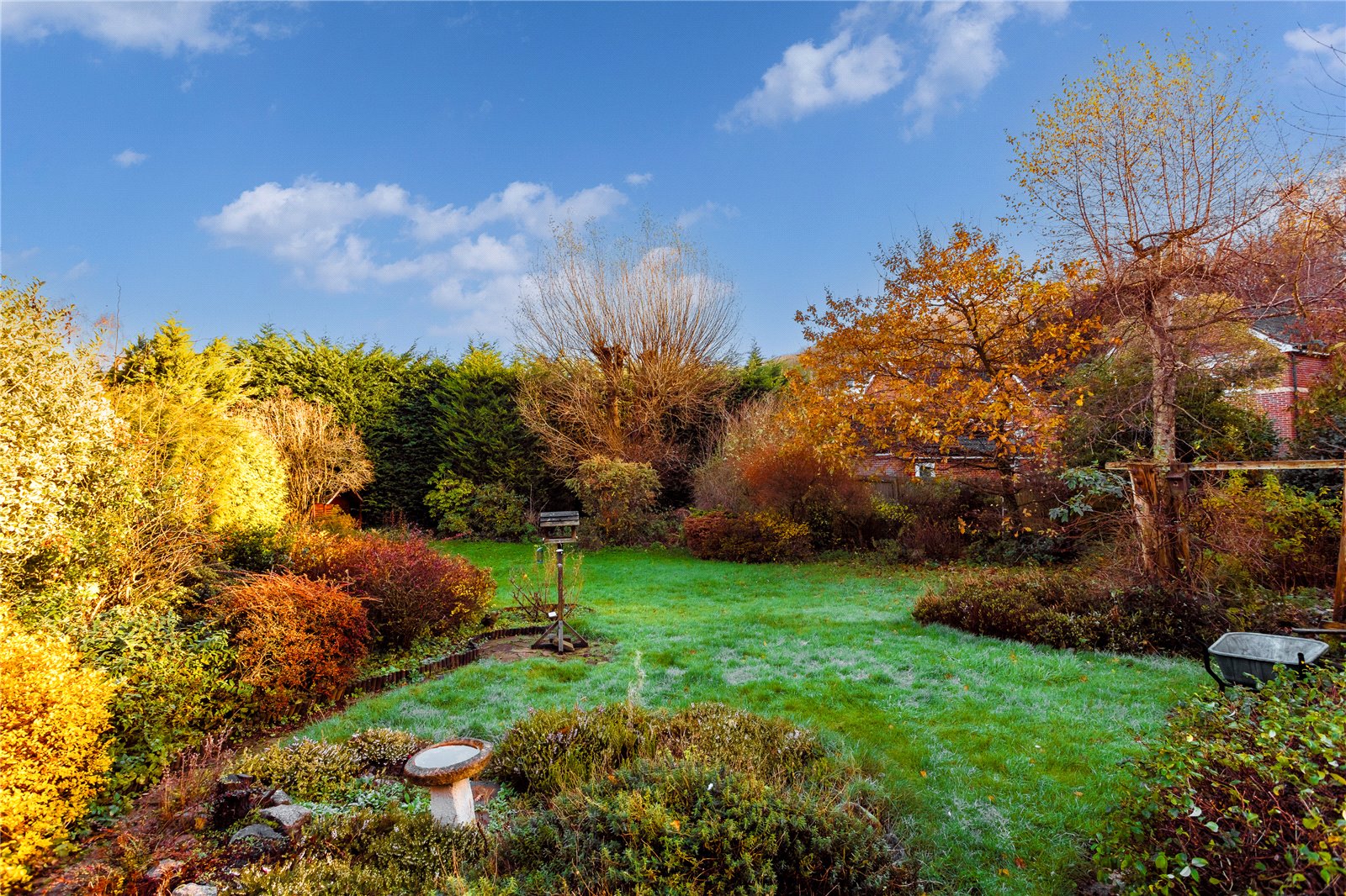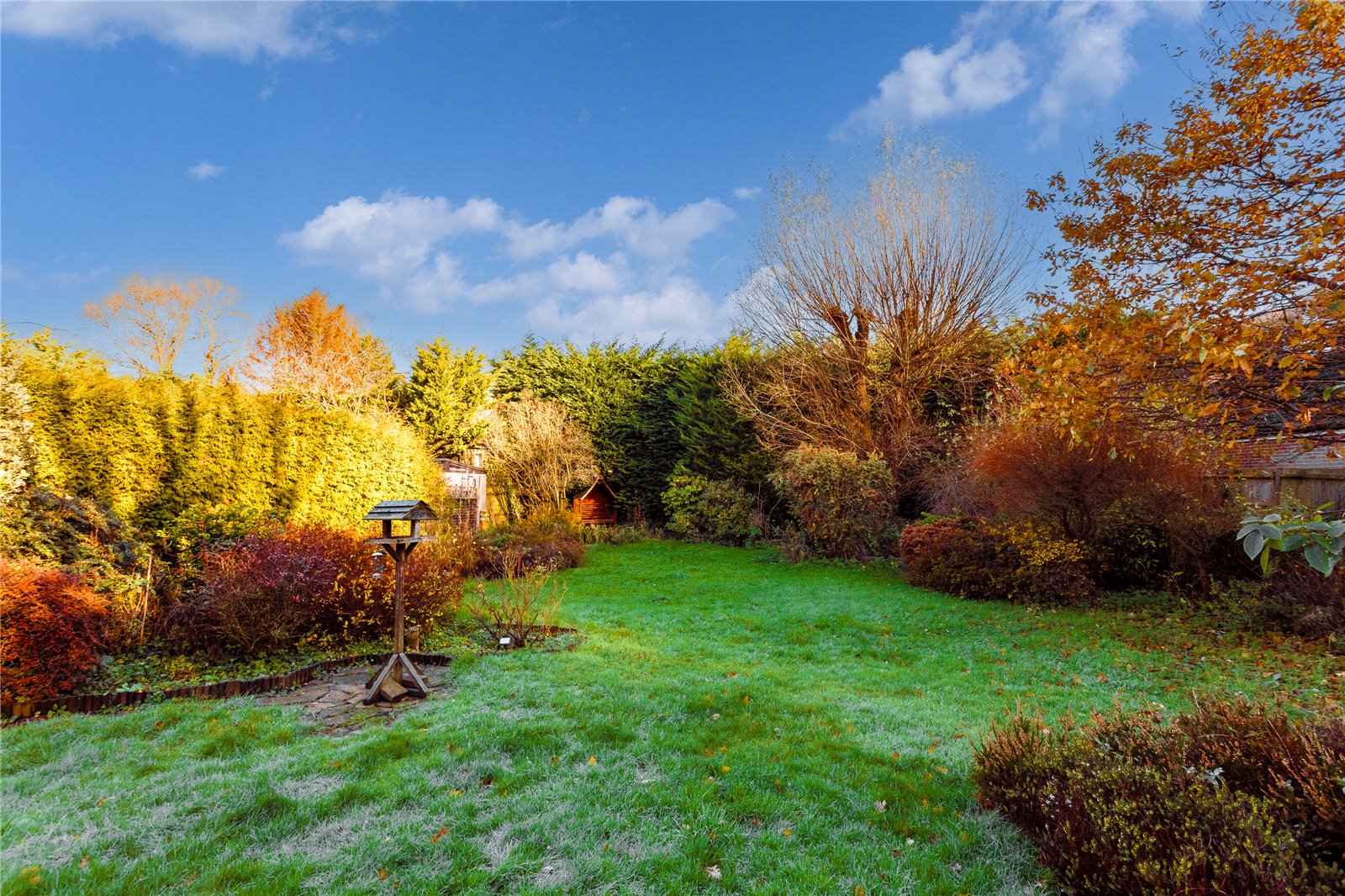 Externally the rear garden is sizeable and packed full of interest with large, shaped borders stocked with an assortment of established plants, shrubs and bushes, whilst lawn surrounds them. Various mature trees dot the plot and the boundary is enclosed by a combination of hedging and fencing.