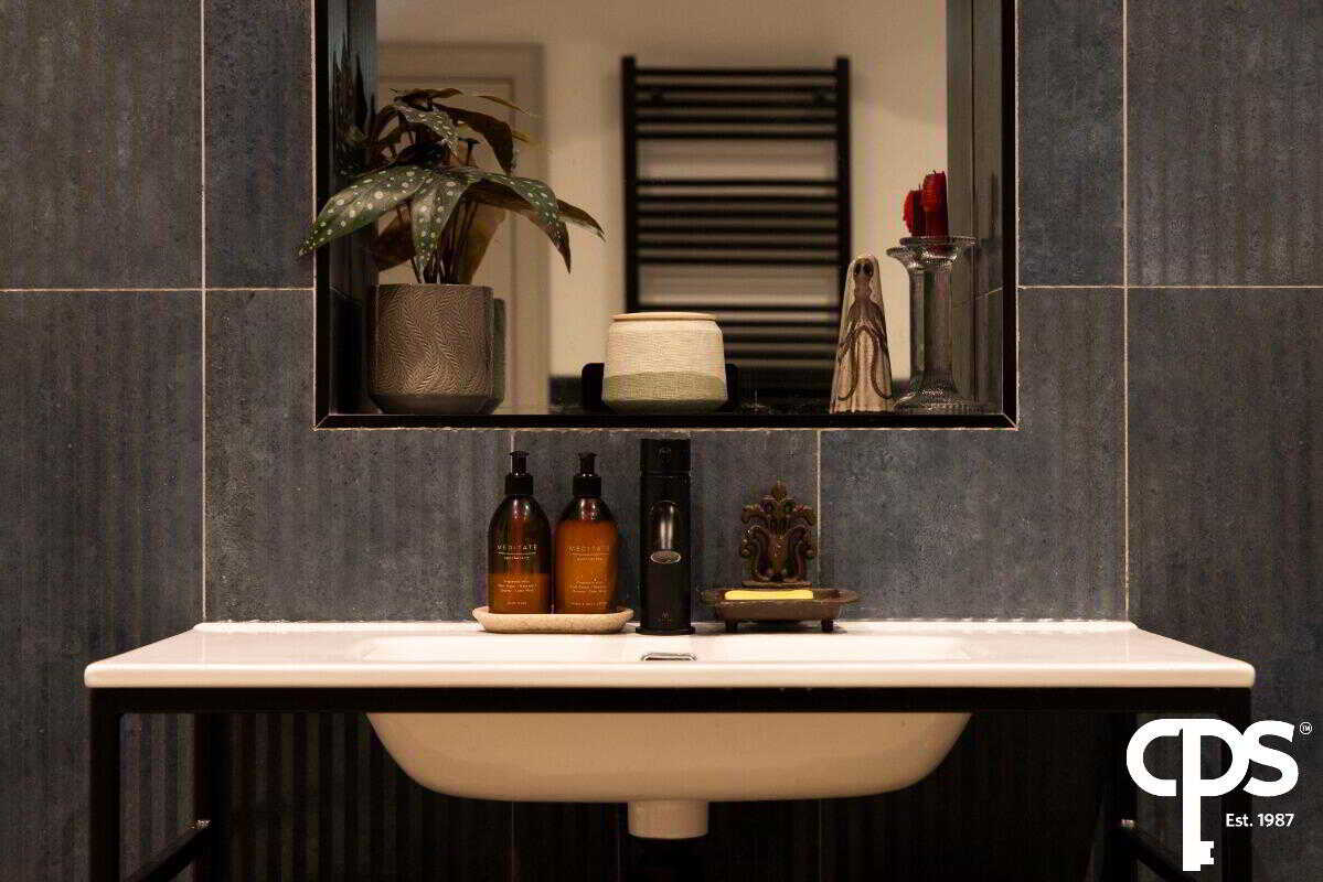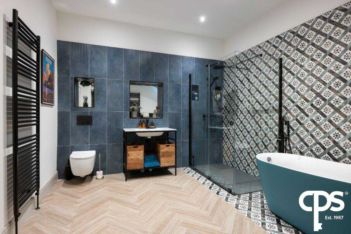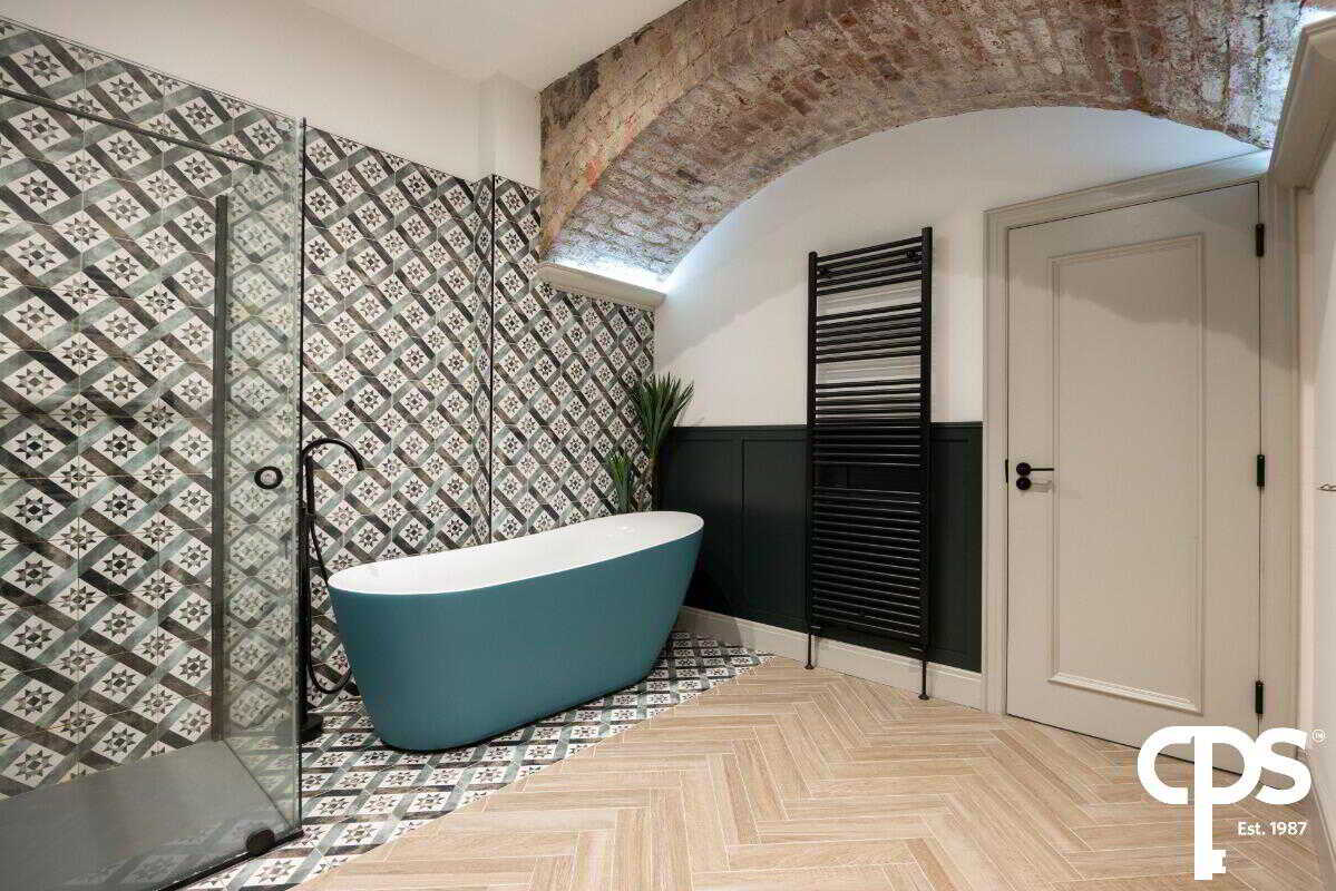 As you enter this space through the original lit archway, you are greeted by a stunning bathroom suite incorporating a large double shower with a freestanding elegant bath tub.