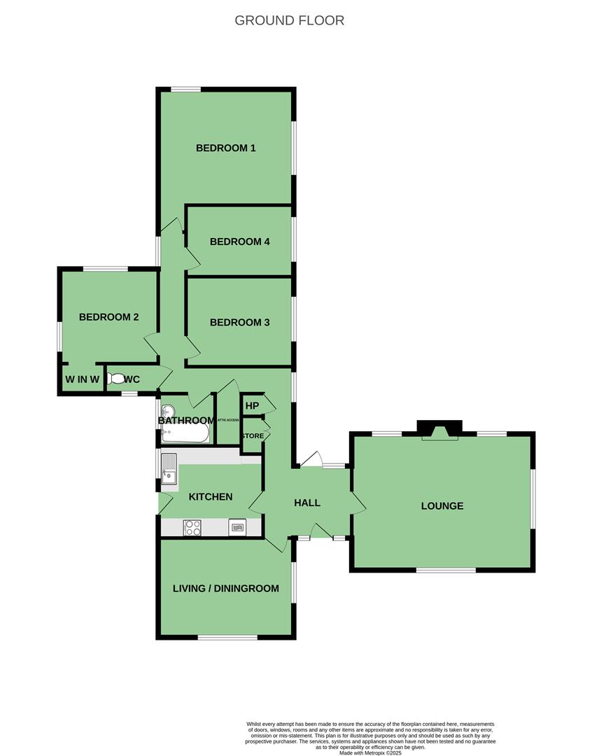 There are four bedrooms, each offering flexibility for family use or guest accommodation. The layout is thoughtfully designed for single-level living, appealing to a wide range of buyers.
