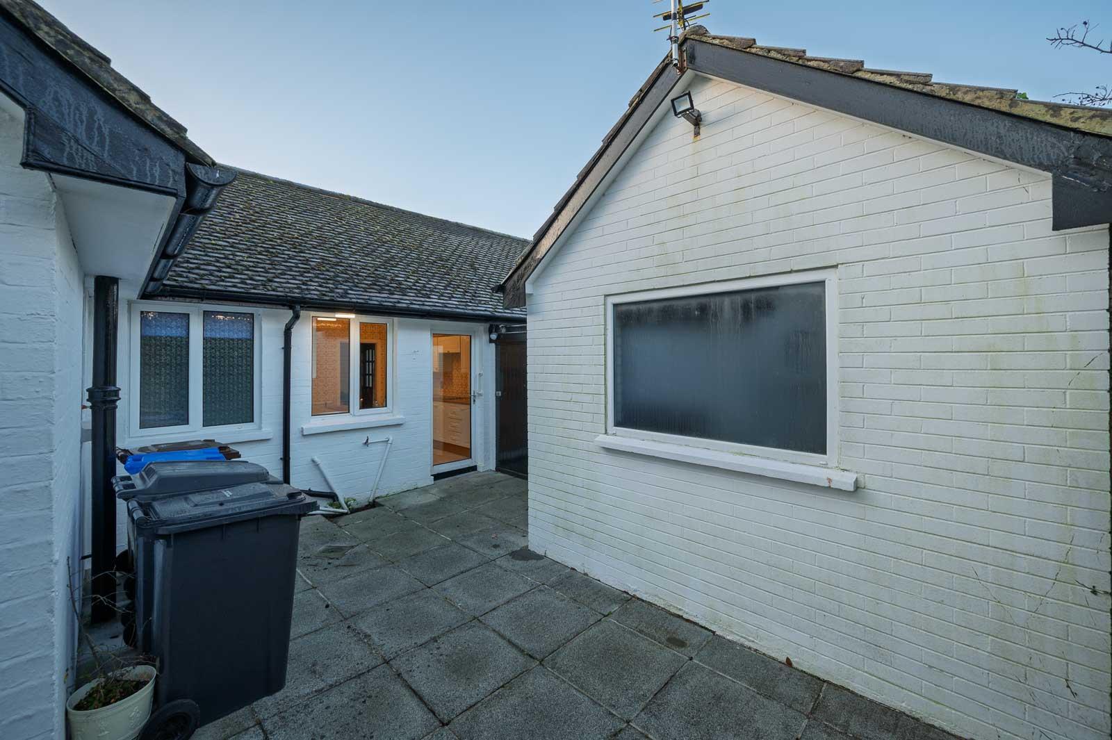 The accommodation comprises a bright and welcoming hallway leading to a spacious lounge, which benefits from large picture windows that fills the room with natural light. The kitchen is well-proportioned and practical, with direct access to the side courtyard, making it ideal for everyday family living. While the property is presented in good condition, it offers excellent scope for modernisation, allowing buyers to create a home tailored to their own style.