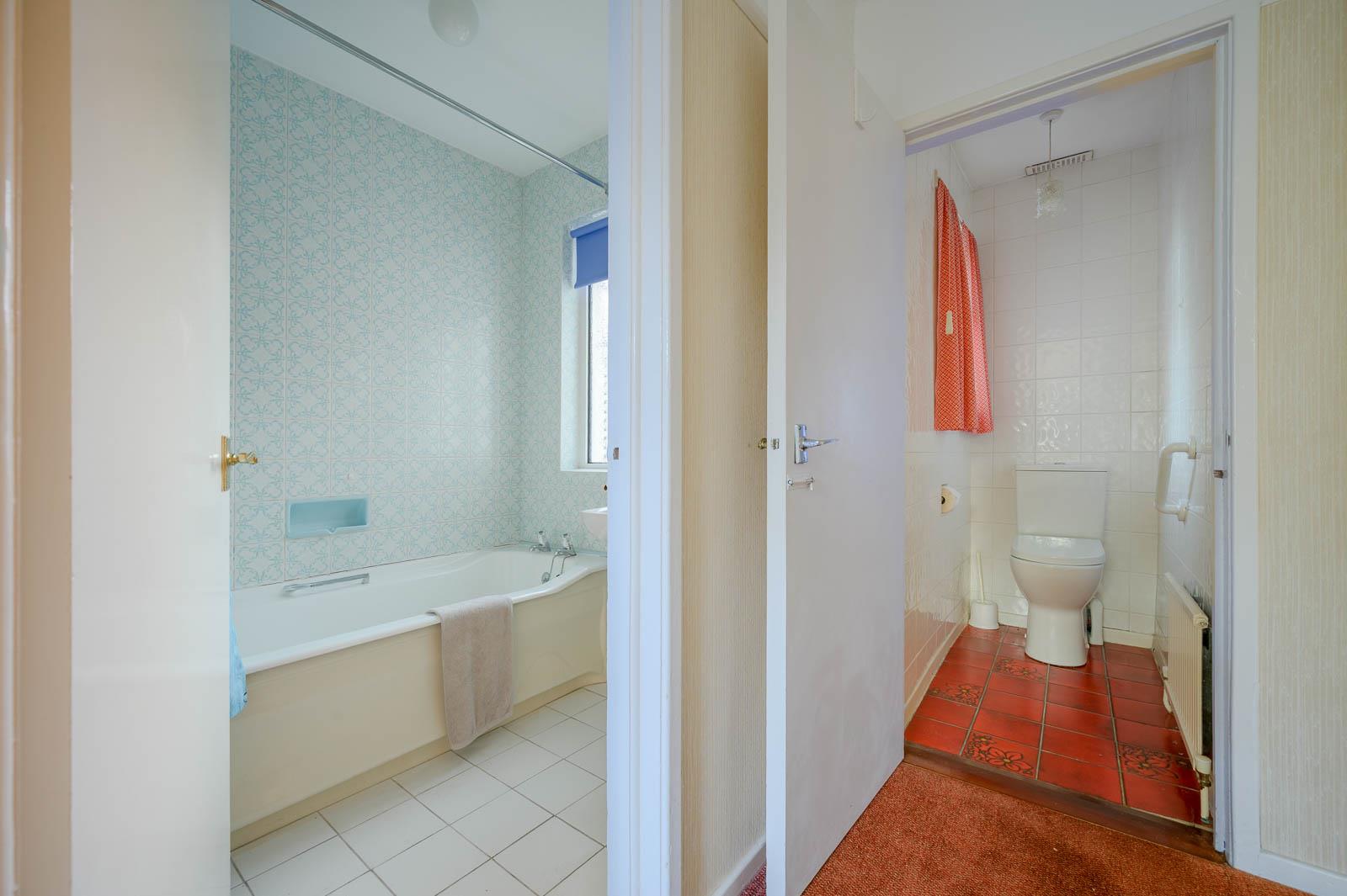 Separate Wc: - With low flush WC, tiled walls, and tiled floor.
