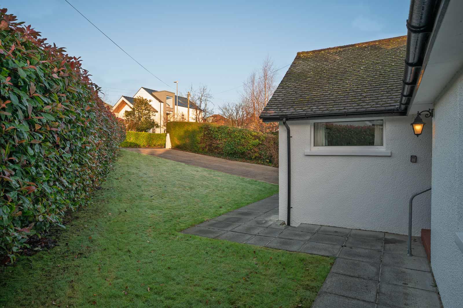 Driveway & Gardens: - Driveway leading to attached garage. Additional carport, garden to front in lawn, mature hedging for excellent privacy, extensive paved patio areas to side and rear, slipway from garage to garden area, superb garden to rear in lawn with mature hedging and shrubbery, basement storage, oil tank, boiler house, and outside light.