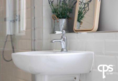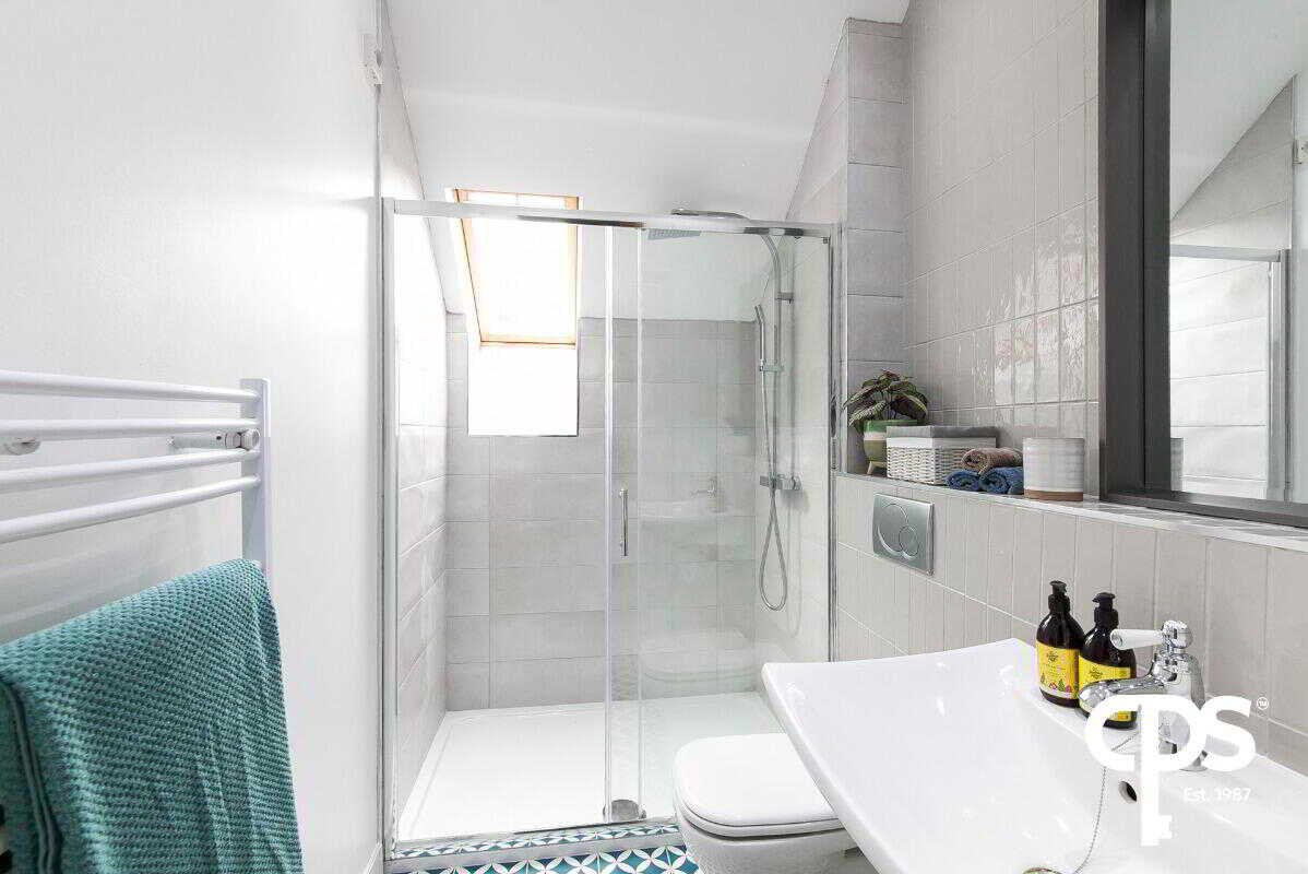 Tiled flooring with part-tiled walls and tiled shower surround. It benefits of a 3-piece suite including a walk-in shower, WC and wash hand basin.
