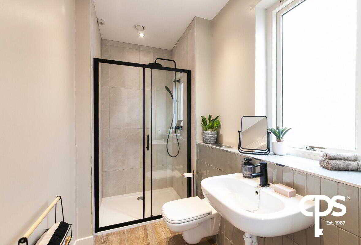 Tiled flooring and tiled shower surround. The en-suite has a three-piece suite including a WC, wash hand basin and walk-in shower.