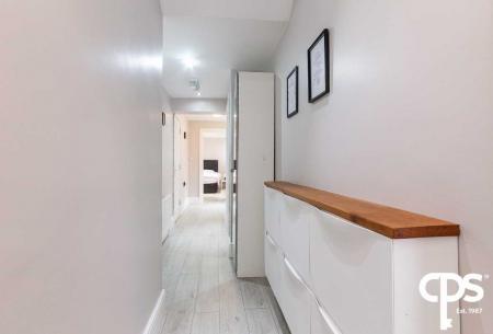 Welcoming entrance with laminate flooring.