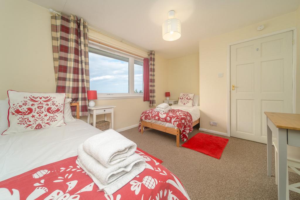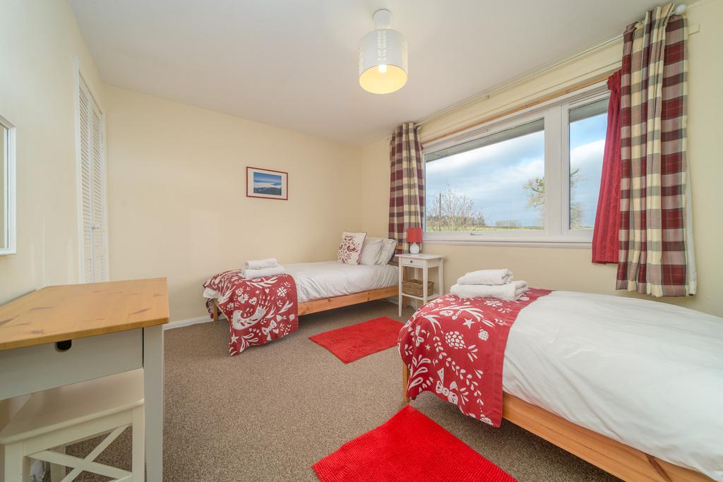 Bedroom 2 is another king-sized bedroom, currently set as a twin room, also featuring built-in storage. A large window overlooking the uninterrupted countryside views to the back of the property, another light, bright and peaceful room.