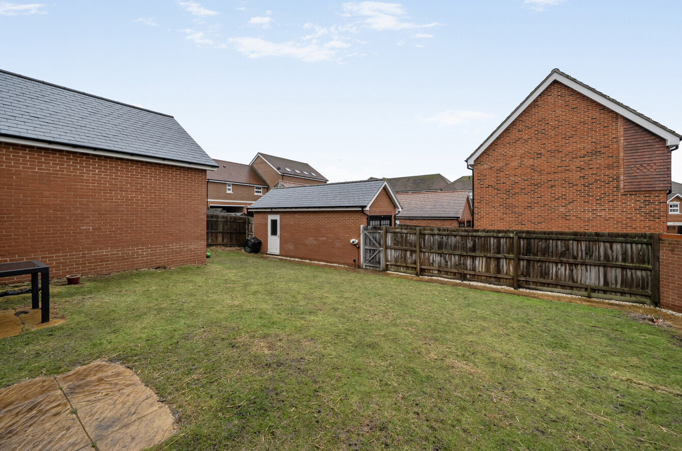 EXCEPTIONAL FAMILY HOME - Located within a highly desirable development, this beautifully presented four-bedroom detached home offers a perfect blend of spacious family living and modern convenience. Whilst also having the added benefit of no onward chain complications.Upon entering, you are welcomed by a light-filled hallway that leads into an impressive dual-aspect living room, stretching the full depth of the property and featuring elegant French doors that open directly onto the garden. The heart of the home is the expansive open-plan kitchen and dining room. This social hub is thoughtfully designed with a feature bay window that bathes the space in natural light, complemented by a practical separate utility room and a guest cloakroom.