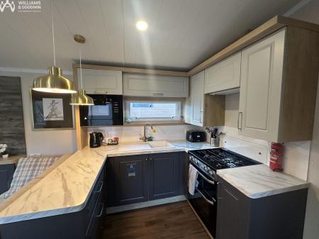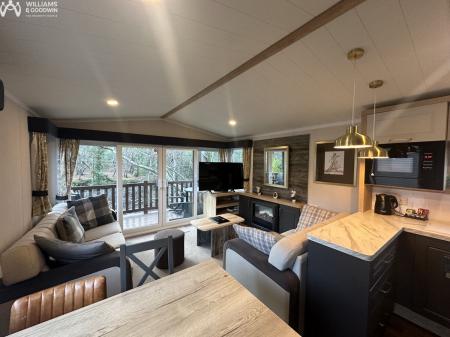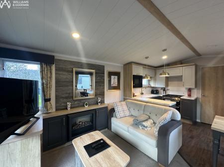 This detached holiday lodge in Ogwen Bank, Bethesda is being sold with no onward chain and a long term agreement. Overlooking the river, this property offers a tranquil setting for your holidays or weekend getaways. The open-plan lounge and kitchen provide a comfortable space for relaxation and dining.