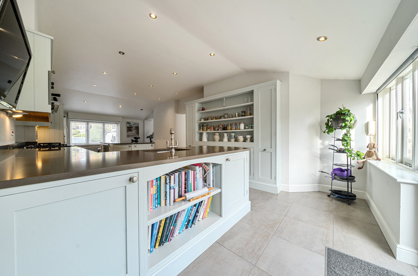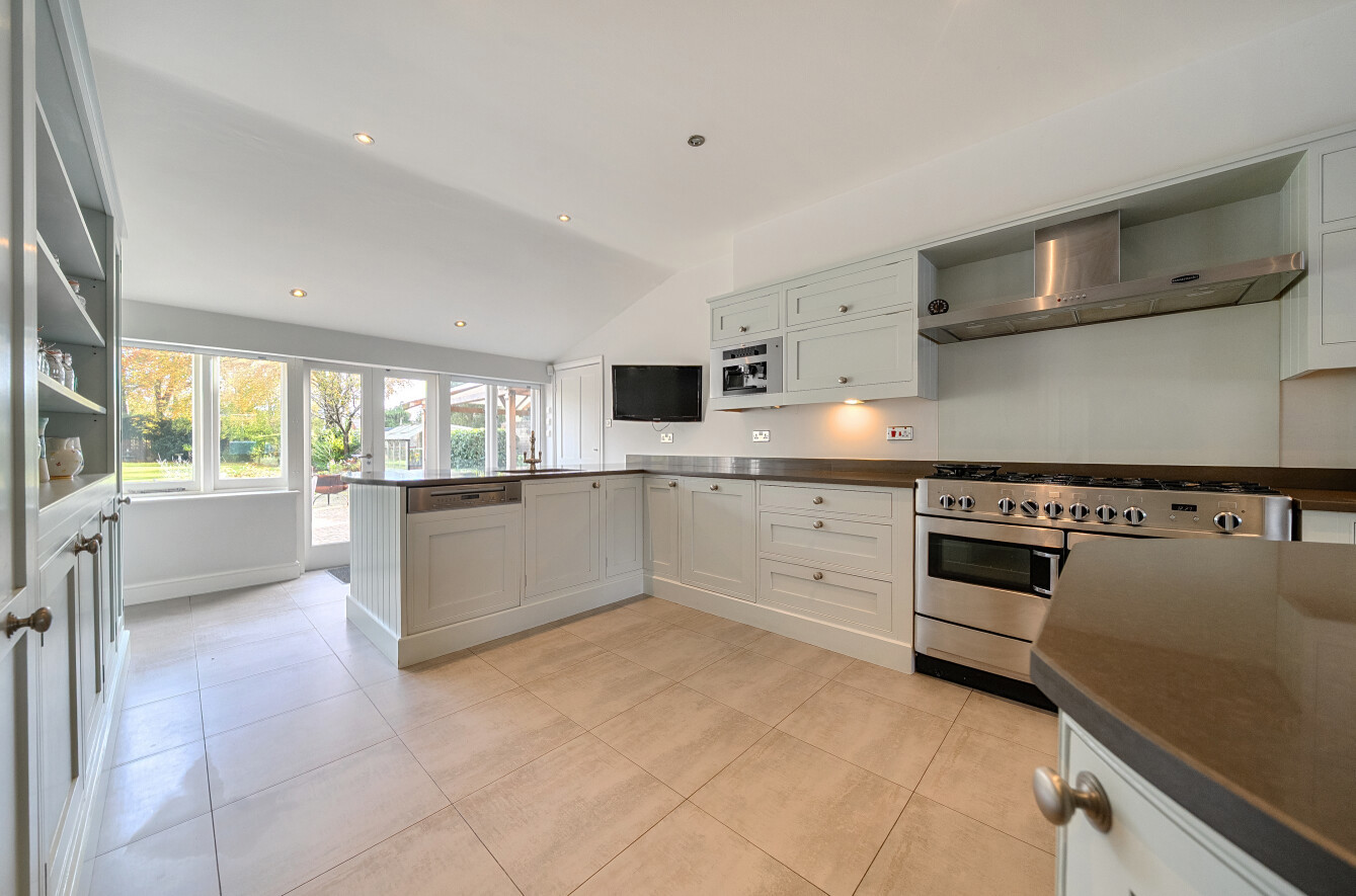 From here a door leads to the kitchen/dining room (also accessed from the entrance hall). Again a very large space and this runs the full depth of the house with windows to the front and double doors to the garden at the rear allowing light to pour in.