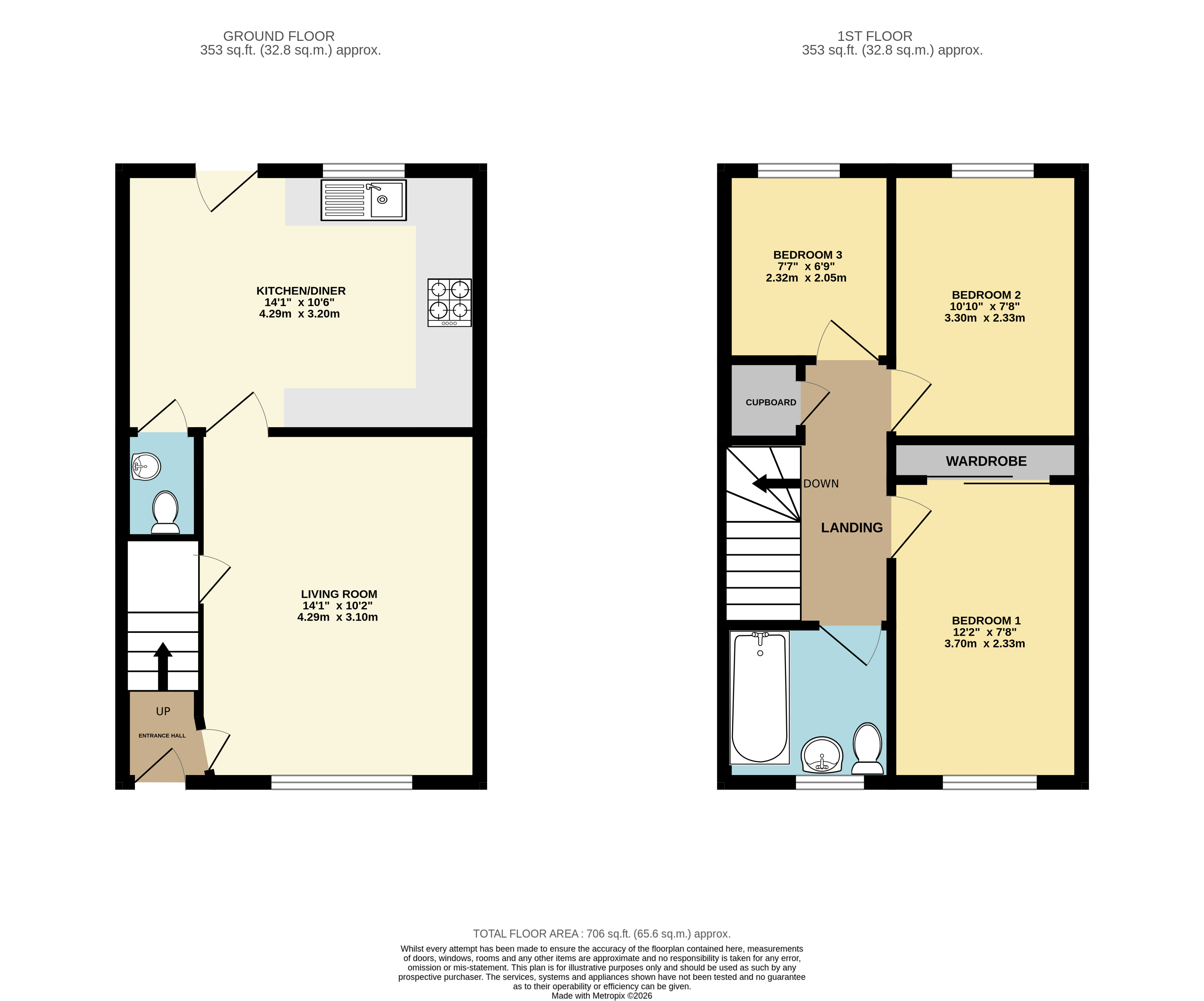A staircase rises to the first floor where the principal bedrooms and the family bathroom are located. The bathroom is fitted with a modern three piece suite comprising a bath with overhead shower, a wc and a hand wash basin. The principal bedroom overlooks the front of the home and benefits from built in wardrobes. Bedrooms two and three are set to the rear, with bedroom two described as a smaller double and bedroom three as a single room that could suit a study, home office or nursery depending on requirements.