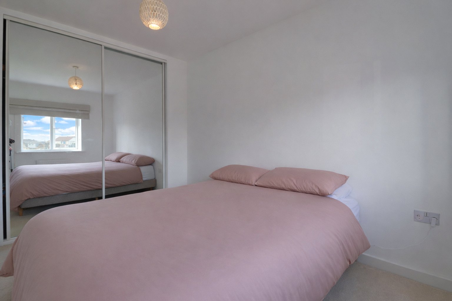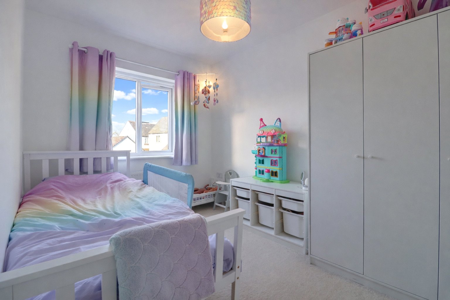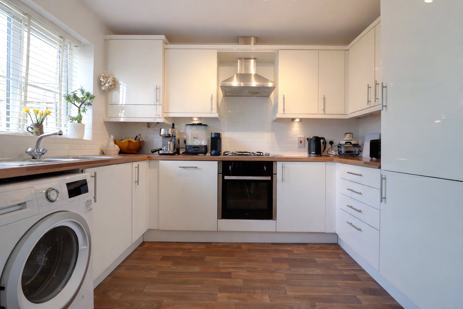 Externally, the property is arranged for minimal upkeep. Immediately outside the rear door is a paved patio area, providing an ideal spot to sit out in warmer months. Beyond this, a larger lawned area offers a safe and secure space for children to play. A gate leads through to the garage and off road parking, adding practicality for day to day life.