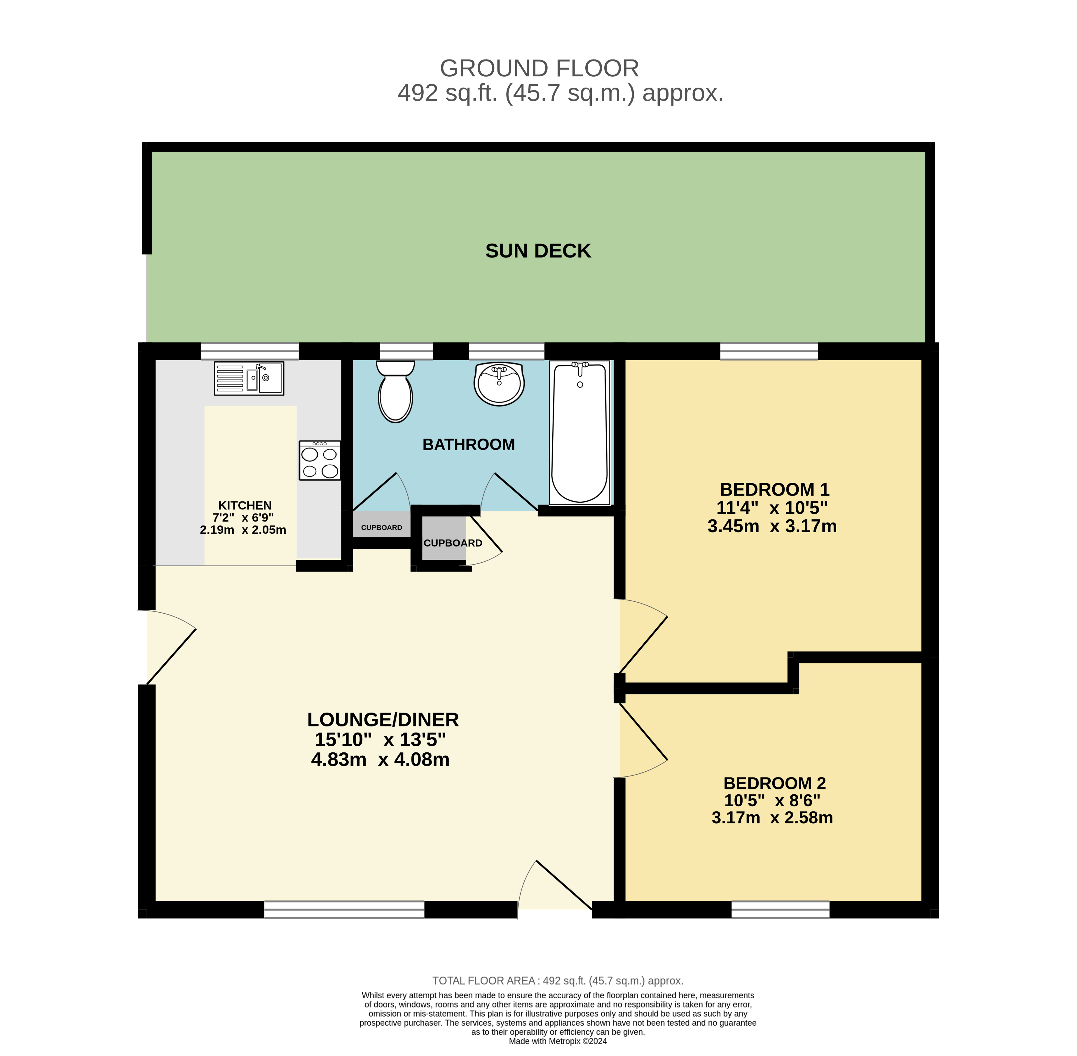 The main living room is light and airy and provides ample space for sizeable furniture and doors that lead to the bathroom and bedrooms. There is access to the kitchen which comprises of eye and base level units including electric oven and hob with further space for freestanding appliances