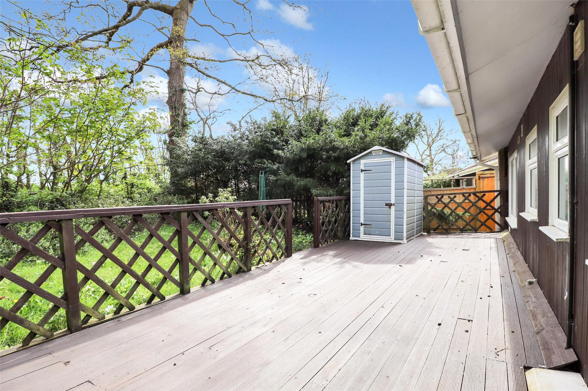 Additonal access from the living room leads onto the side of the property to the rear garden where a further large area of wooden decking that adjoins the property overlooks the rear garden and gives space for outside tables and chairs.