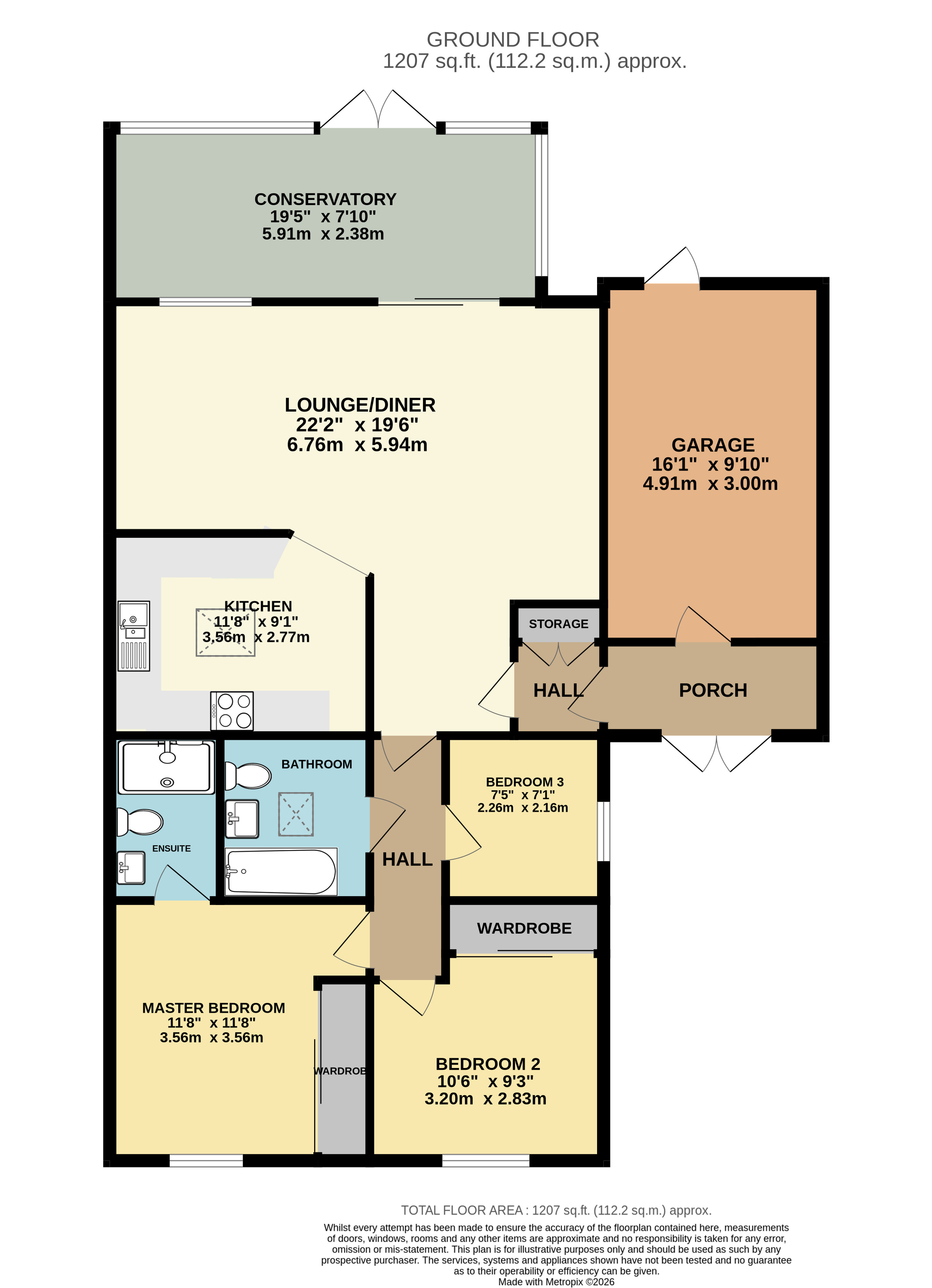 Conservatory 19'5" x 7'10" (5.92m x 2.4m).