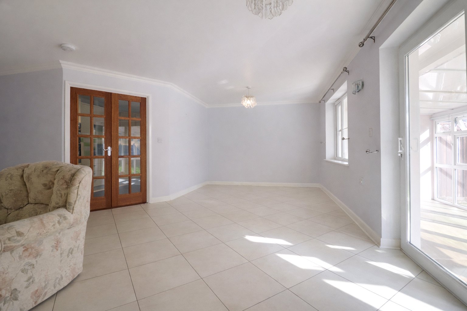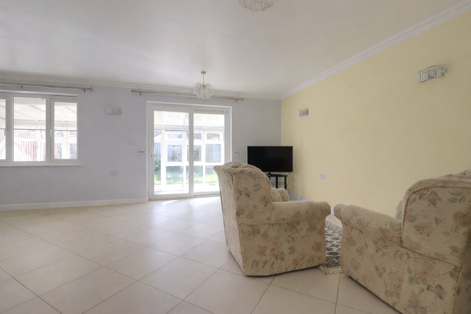 Accessed from the front, a practical porch provides space for coats and shoes, with an internal door leading to the garage and a further doorway opening into the main home. The spacious open plan living area creates a welcoming and sociable hub, offering ample room for substantial furniture. This space is enhanced by patio doors that open into the conservatory, which comfortably accommodates a family dining table and chairs.