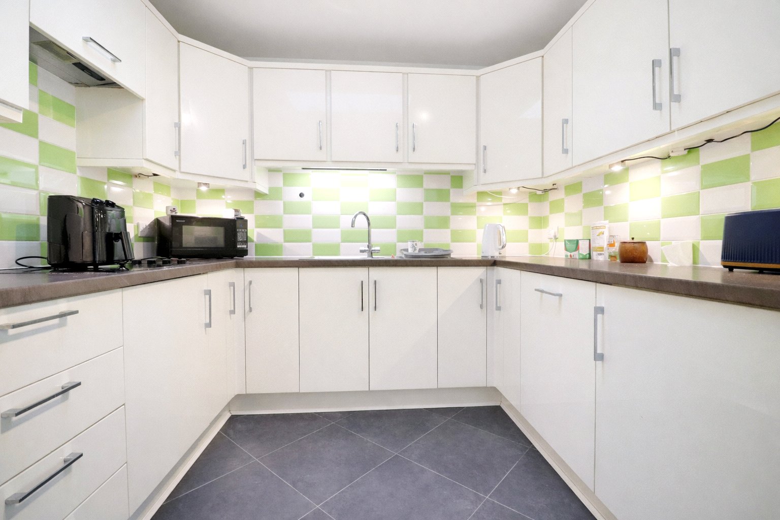 The conservatory adds valuable flexibility to the property, suitable for a variety of uses, and features additional patio doors that lead out to the rear garden. The modern fitted kitchen is well-equipped with a range of eye and base level units, an integrated electric oven and hob, and space for freestanding appliances.