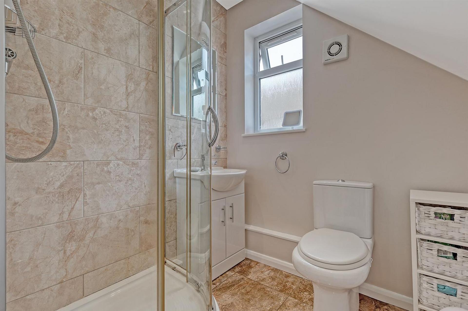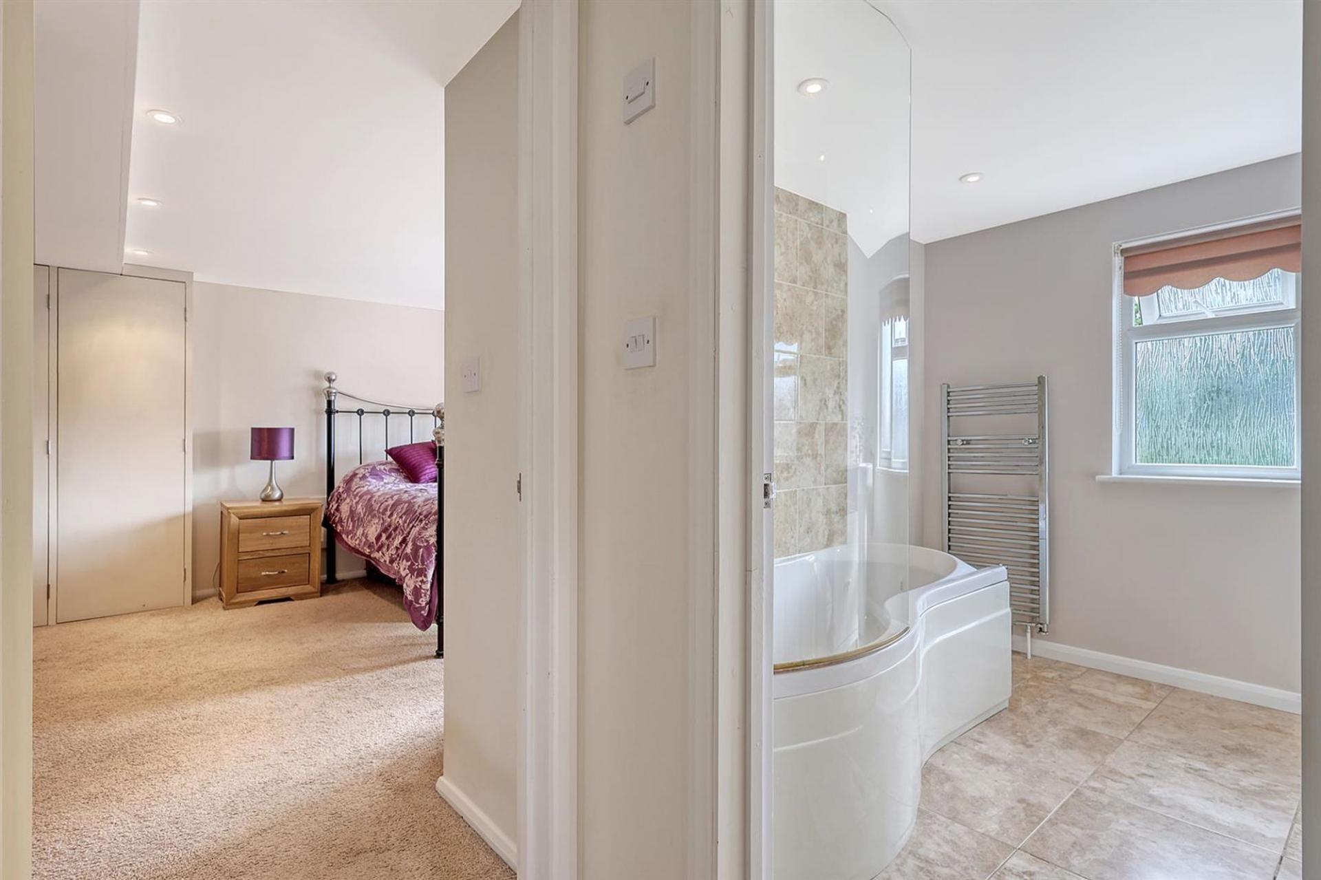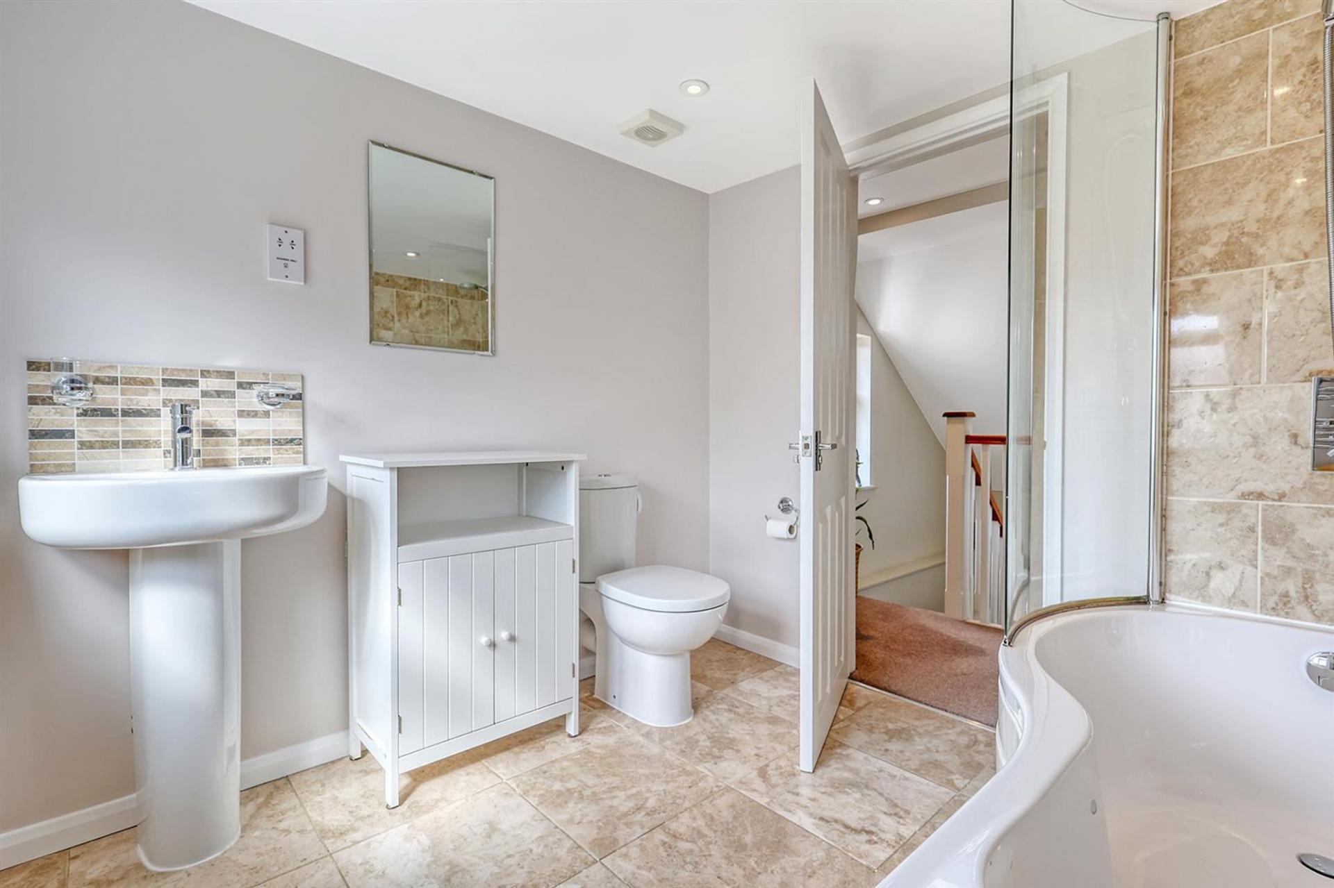 Stairs lead to the first floor where the principle bedroom is found with fitted wardrobes and access to eaves storage, there is a separate bathroom. Both rooms overlook the rear garden.