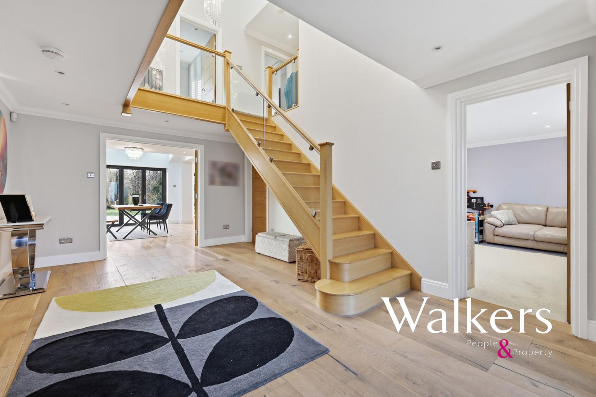 The property is entered via an impressive double height entrance hall, featuring a bespoke staircase with glass balustrade that rises to a galleried landing, creating a wonderful sense of space and light.
