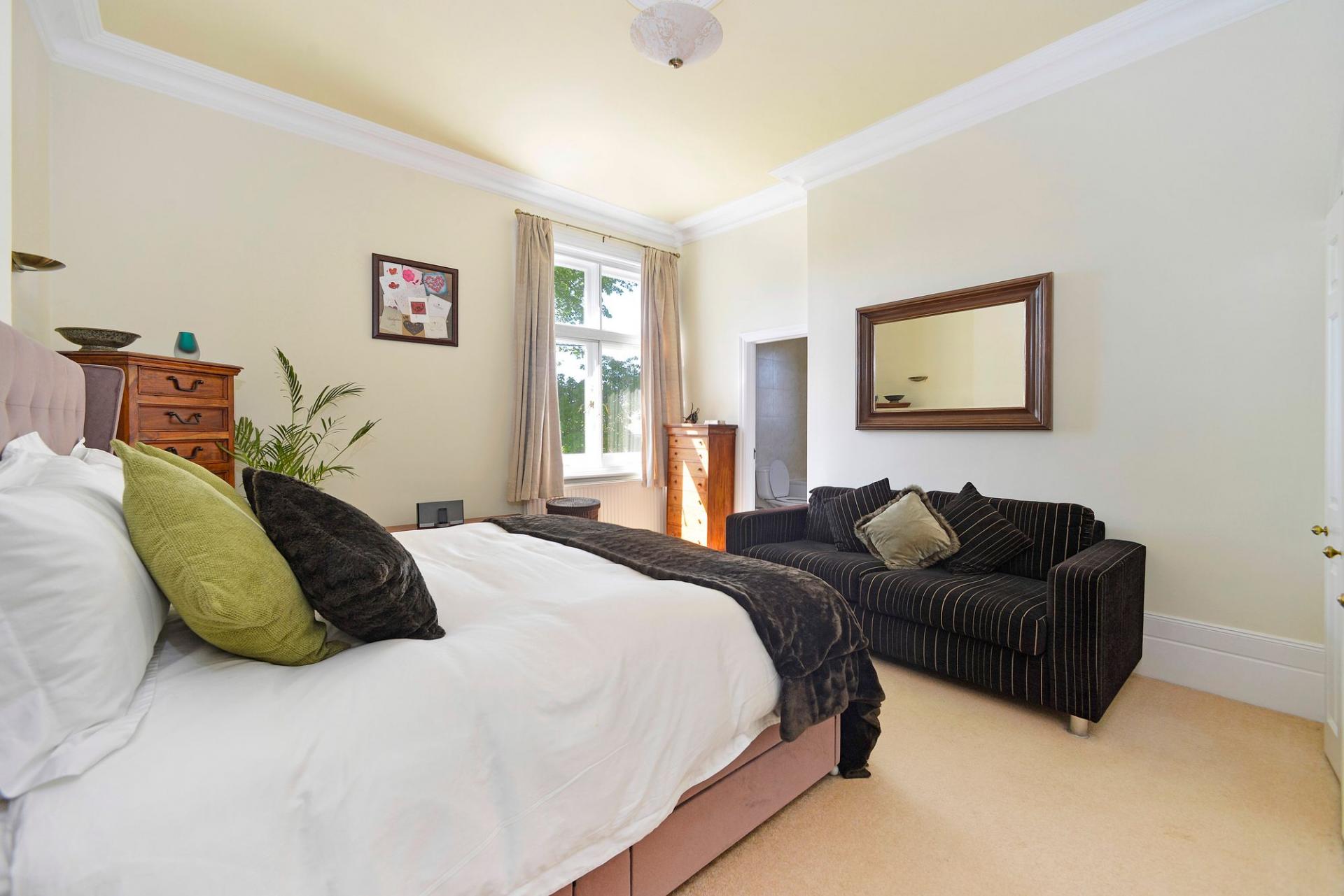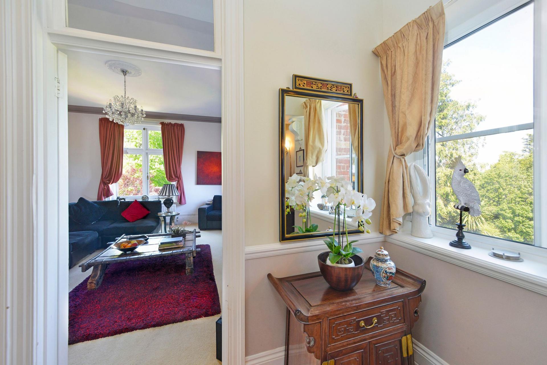 An impressive, spacious first floor luxury apartment within a classic manor house situated in the heart of this popular West Sussex village. The property offers beautifully presented bright and airy accommodation with super high ceilings and well proportioned rooms totalling some 1,300 sq ft. The property is situated on the first floor accessed via the main reception hall with personal front door to a dining/reception hall with fitted kitchen/breakfast room off, superb double aspect sitting room with fireplace and views over the village. Off the main drawing room, there is a double bedroom or study and there is a master bedroom with an excellent range of fitted wardrobe cupboards and ensuite bathroom. The accommodation then flows to another double bedroom or study and smaller bedroom or boot room. One of the features of the property is its beautifully landscaped private garden which certainly has a Mediterranean feel to it with paved patio areas having neatly maintained and well stocked flower and shrub borders around. Established hedging surrounds the garden providing high degrees of privacy and all enjoys a bright and sunny southerly aspect. There is a gate in the garden that provides access to the garage with power and light and additional parking. This property certainly warrants a visit to fully appreciate the quality and space of accommodation on offer and whilst the current owners occupy the property as their permanent residence, it is also ideally suited as a lock up and leave, if it is a second home.