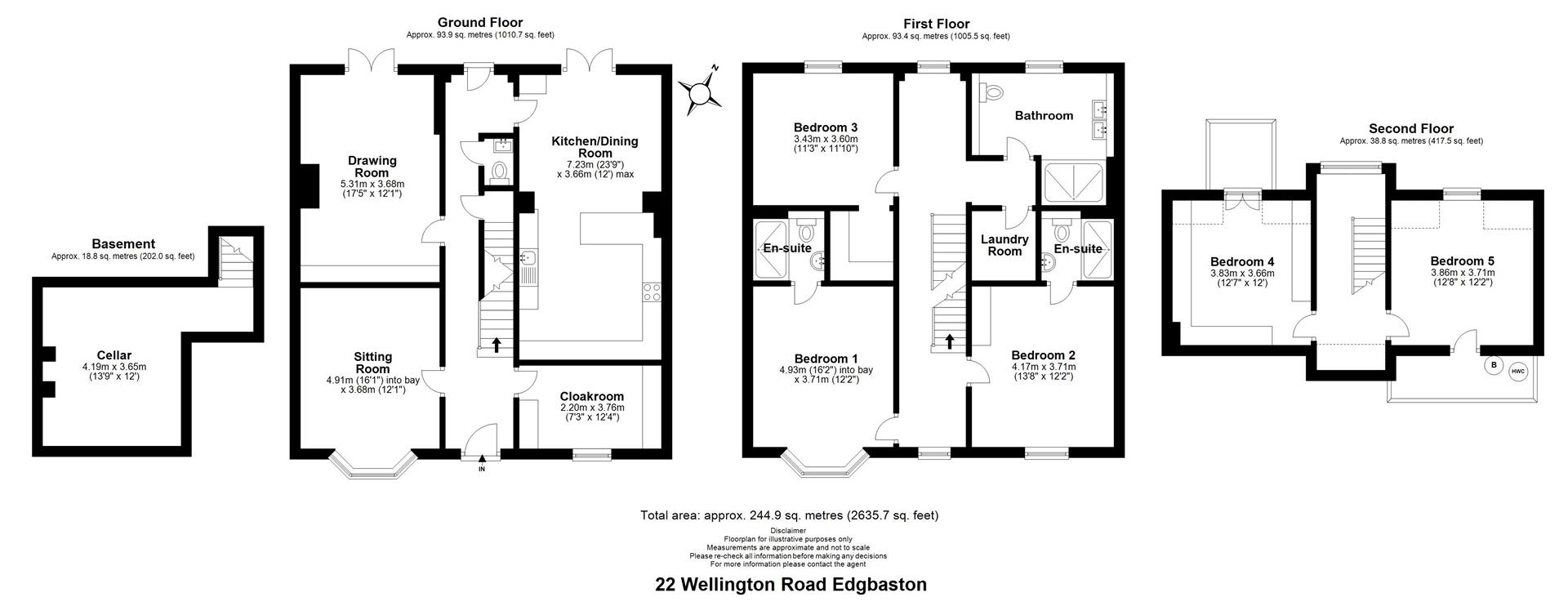The accommodation is principally laid out over three floors with the added benefit of a cellar. In brief the property includes two reception rooms, modern kitchen diner, guest WC and boot room to the ground floor. The first floor offers three double bedrooms, two with en-suites and family bathroom, complete with laundry room. The second floor offers a further two double bedrooms and ample storage within the eaves. To the front of the property is a gated driveway and to the rear a substantial mature garden.