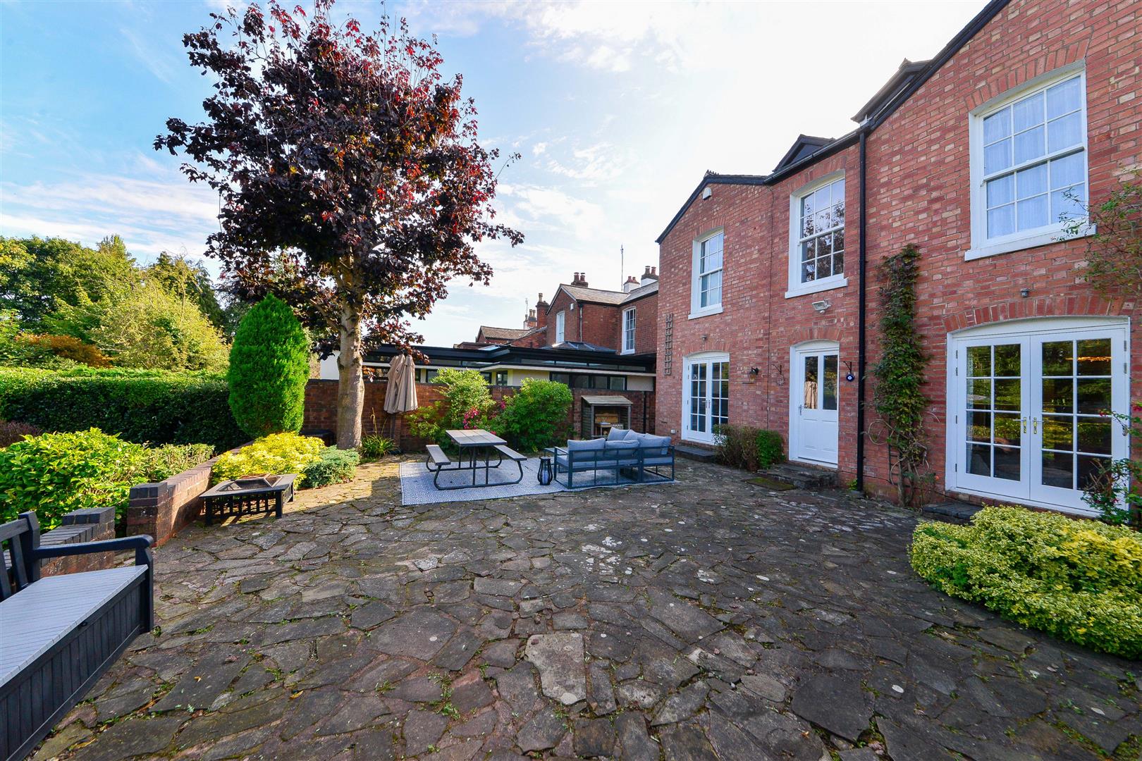 Garden - To the front of the house is a good-sized brick paved driveway set behind electric gates and a low level wall with railings. There is a type 2 electric vehicle charger discreetly positioned within the side passage leading to the rear garden. The rear garden is an excellent size and has a particularly large paved patio immediately to the rear of the house providing an ideal entertaining space. Beyond the patio steps lead down to the large lawn with free-form borders either side which are well-stocked with flowering shrubs and plants and flanked by mature screening hedges to each boundary. There is a timber shed to the far end of the garden.