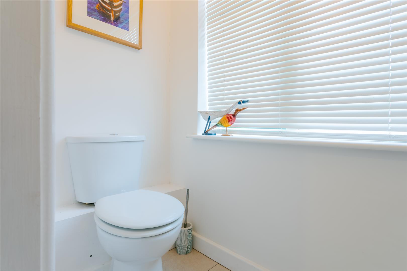 Guest Wc - Comprising low level flush WC, hand wash basin and towel radiator. Window to the front elevation and ceiling light point.