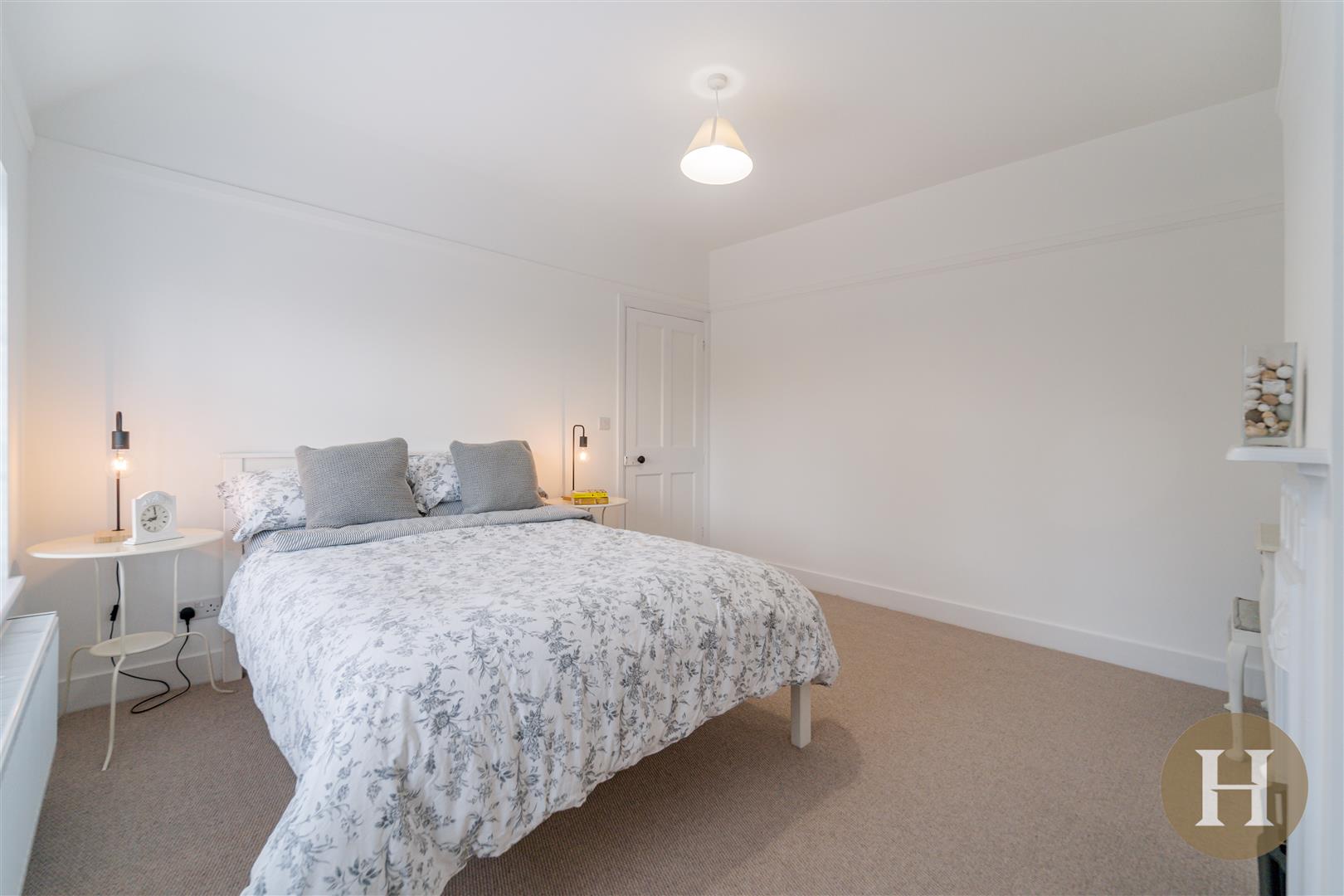 Bedroom Two - Carpeted flooring, double glazed window to front elevation, radiator, feature fireplace and ceiling light pendant.