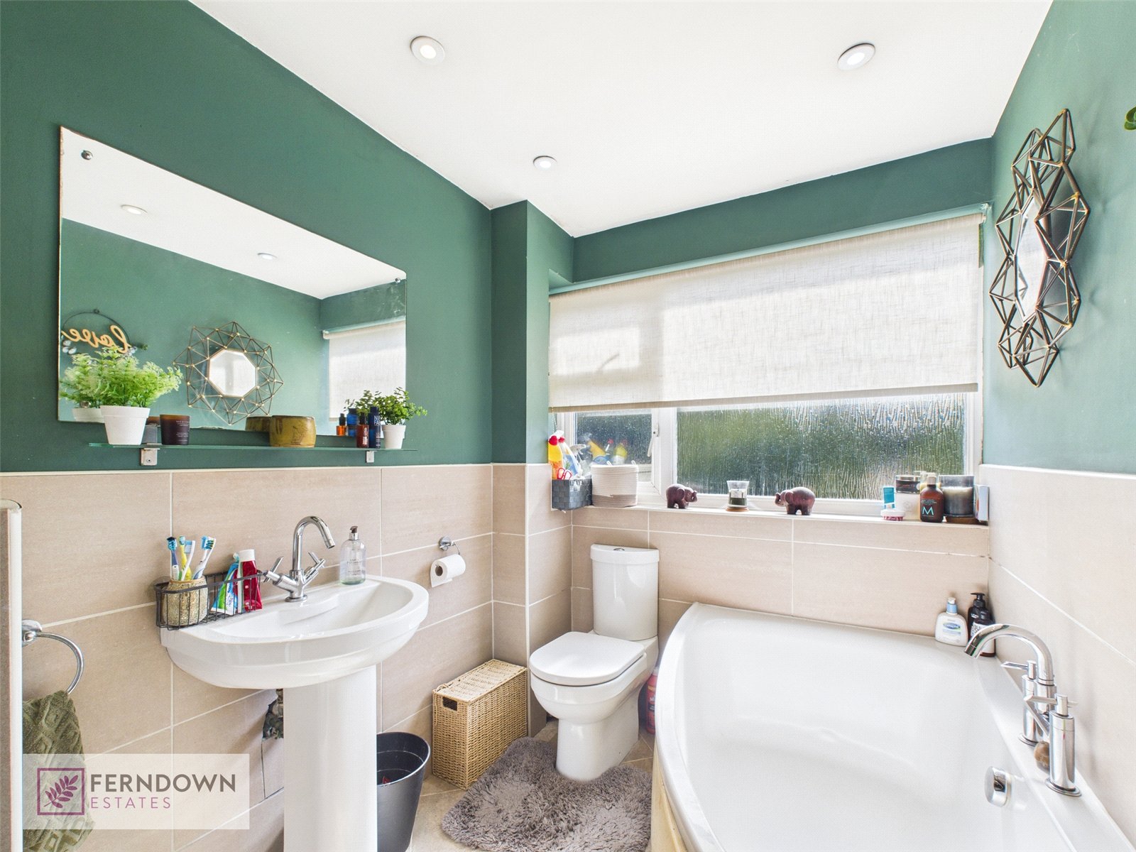 To include a panelled bath, shower cubicle, low level wc and a pedestal wash hand basin