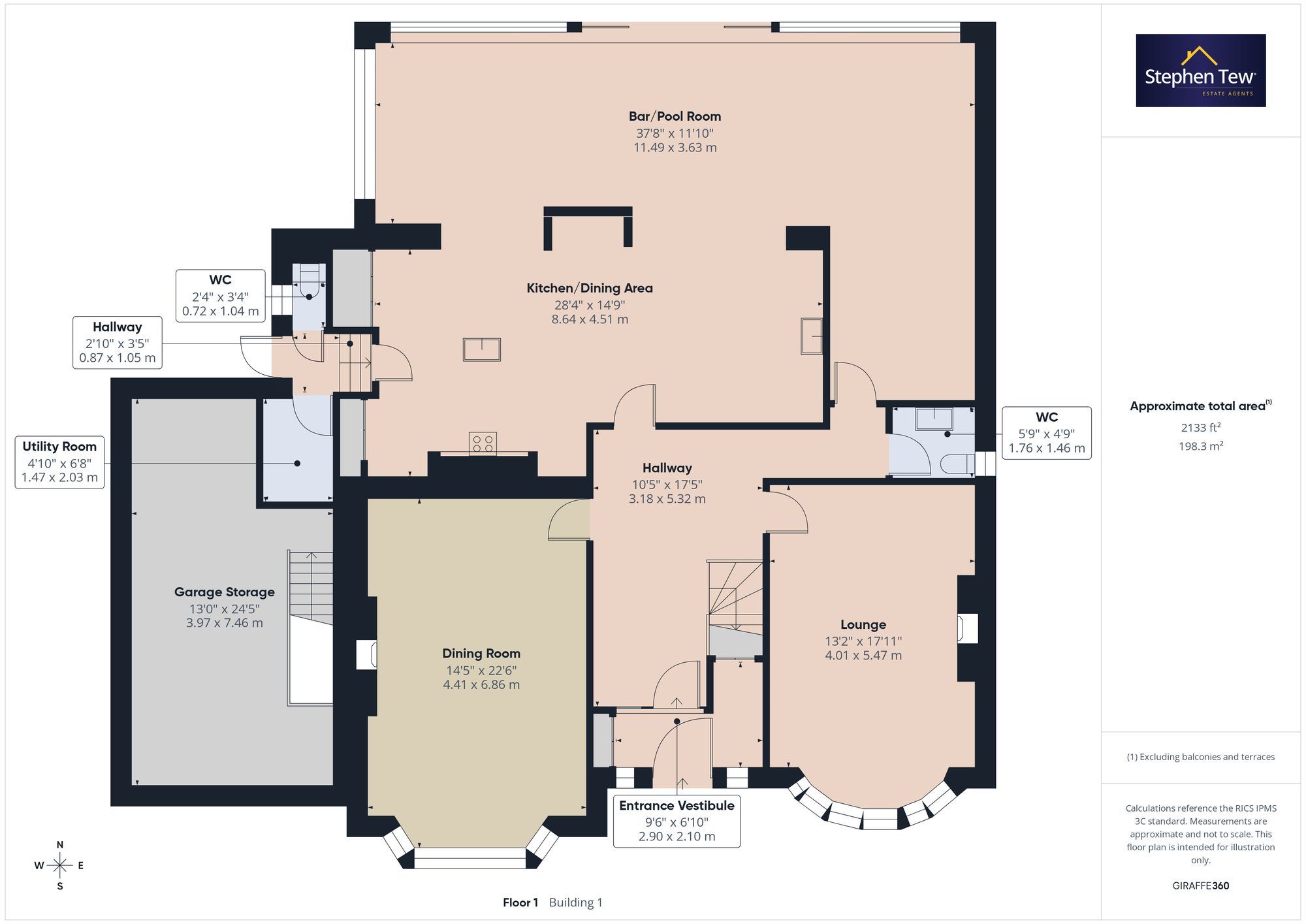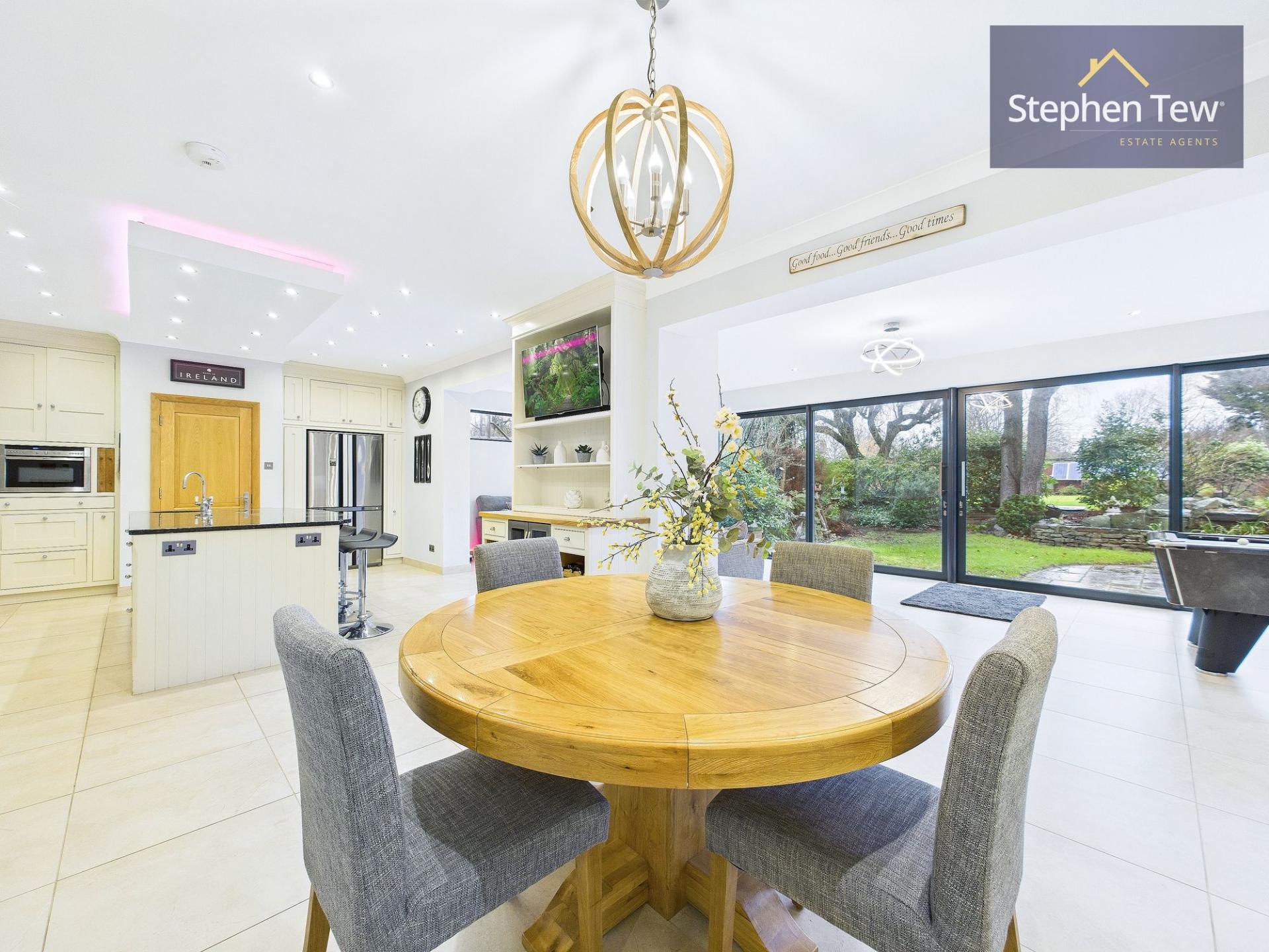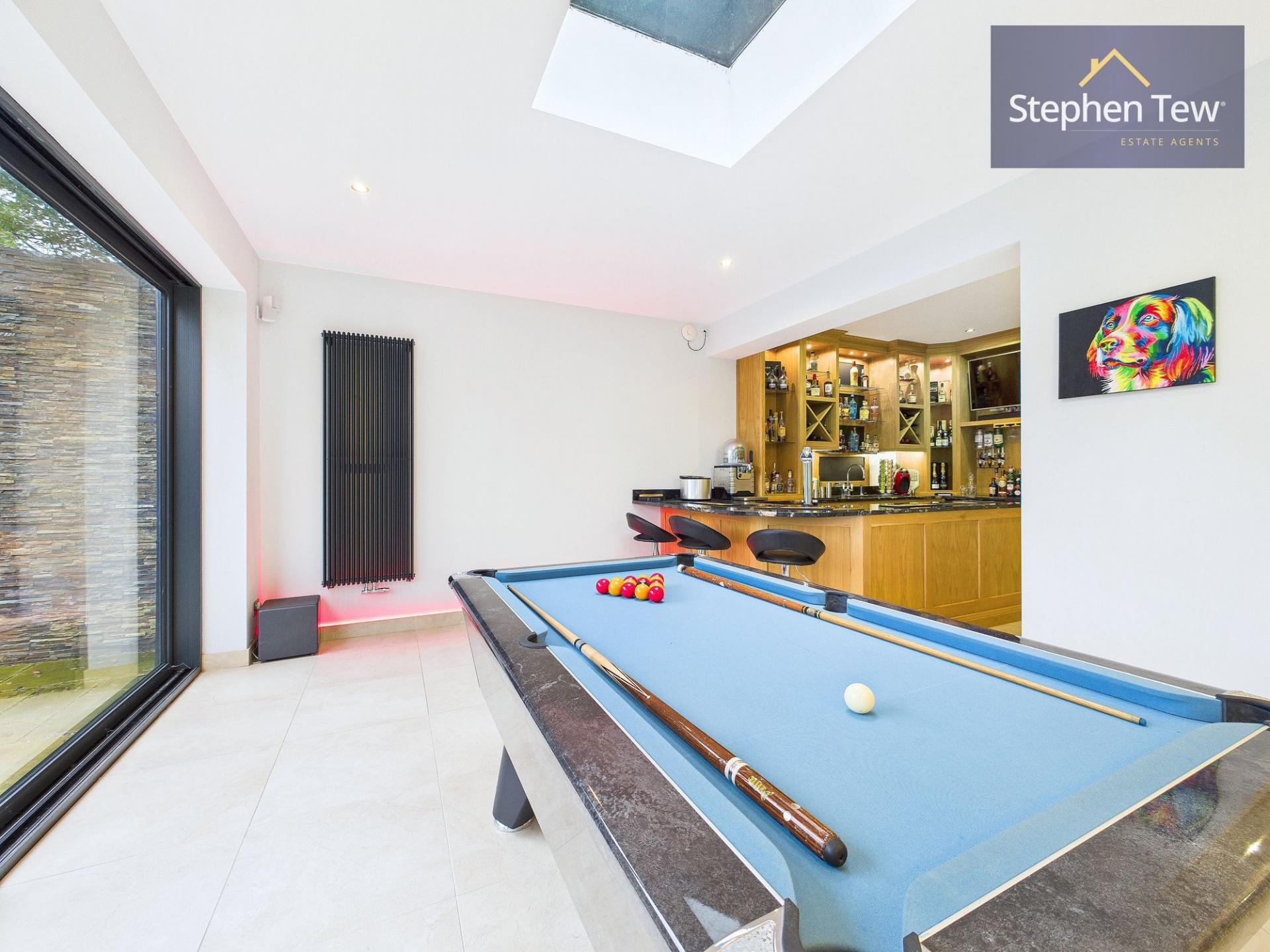 - Entrance Leading to Lounge, Formal DIning Room, Open Plan Modern kitchen / Dining area with island and integrated appliances opening to the Bar/Pool room