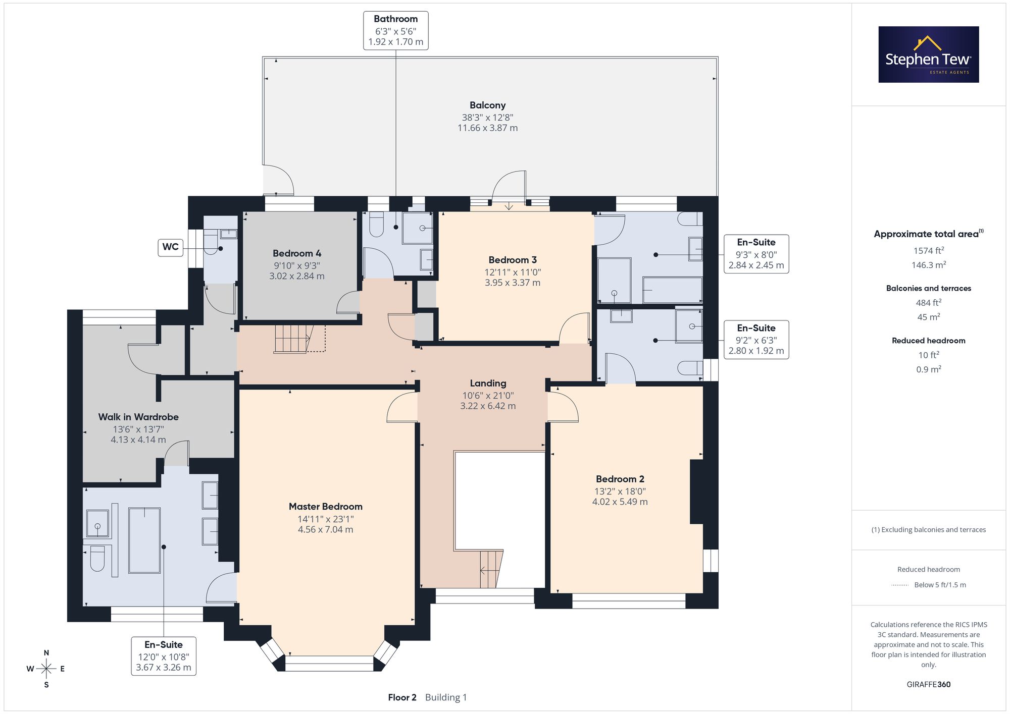 - Stairs to Master Bedroom with En-suite, Walk-in wardrobe/dressing room, 2 further En-suite Bedrooms and 4th Bedroom.